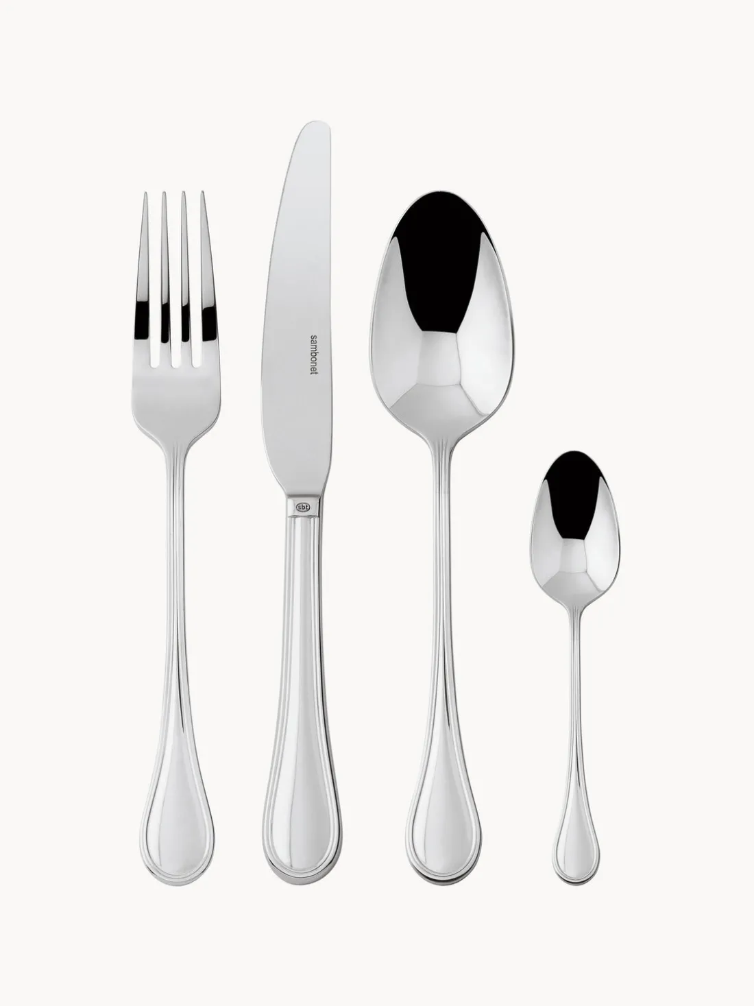 Cubertería de 16 piezas que consta de 4 tenedores, 4 cuchillos, 4 cucharas y 4 cucharillas.
