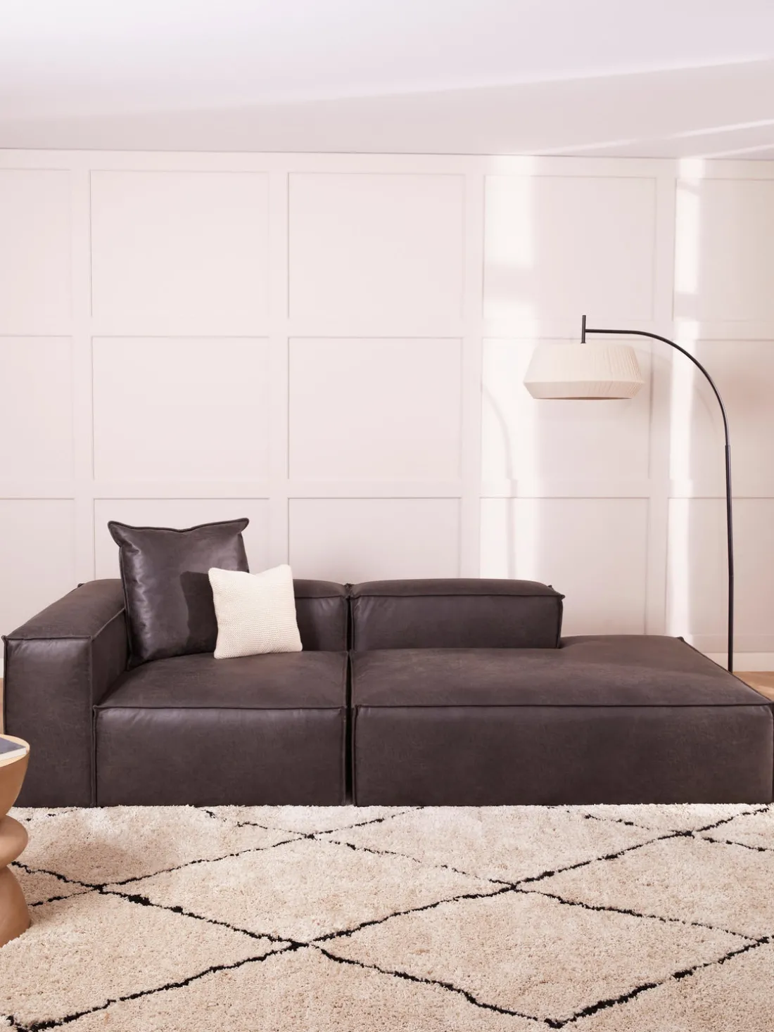 También puedes descubrir otros productos a juego en nuestra gama que se adaptan perfectamente a LENNON: la consola LANA no solo ofrece espacio de almacenamiento adicional, sino que también es un elemento decorativo que se adapta exactamente a las dimensiones de LENNON. El taburete LENNON con bandeja de madera se puede utilizar de forma flexible como mesa de centro o como elemento intermedio en el sofá, para conseguir un aspecto elegante y espacio de almacenamiento práctico. No te olvides del complemento perfecto: cojines de sofá en todos los tejidos y colores de LENNON para un look perfecto, ya sea uniforme o en un estilo mix & match.
