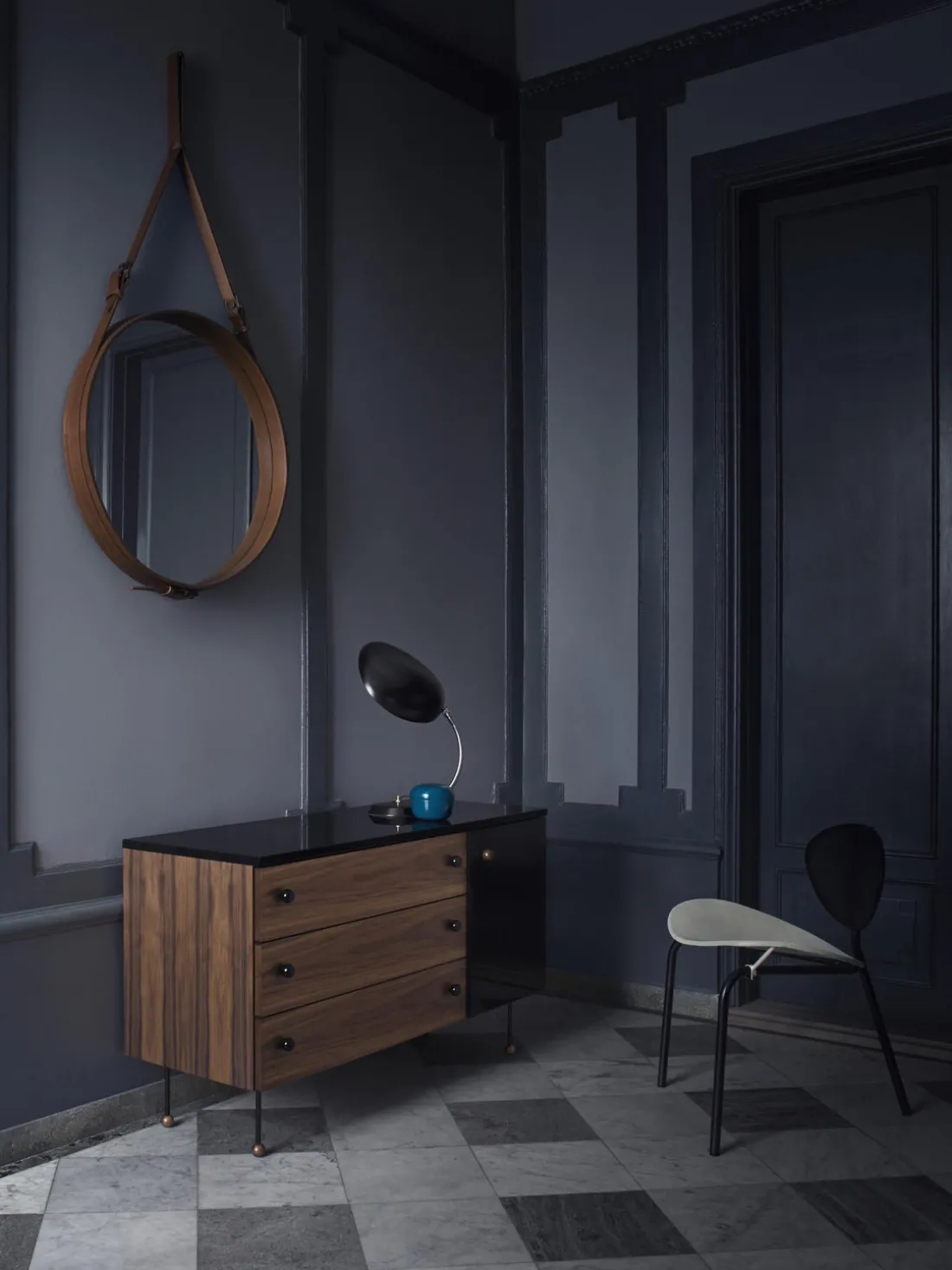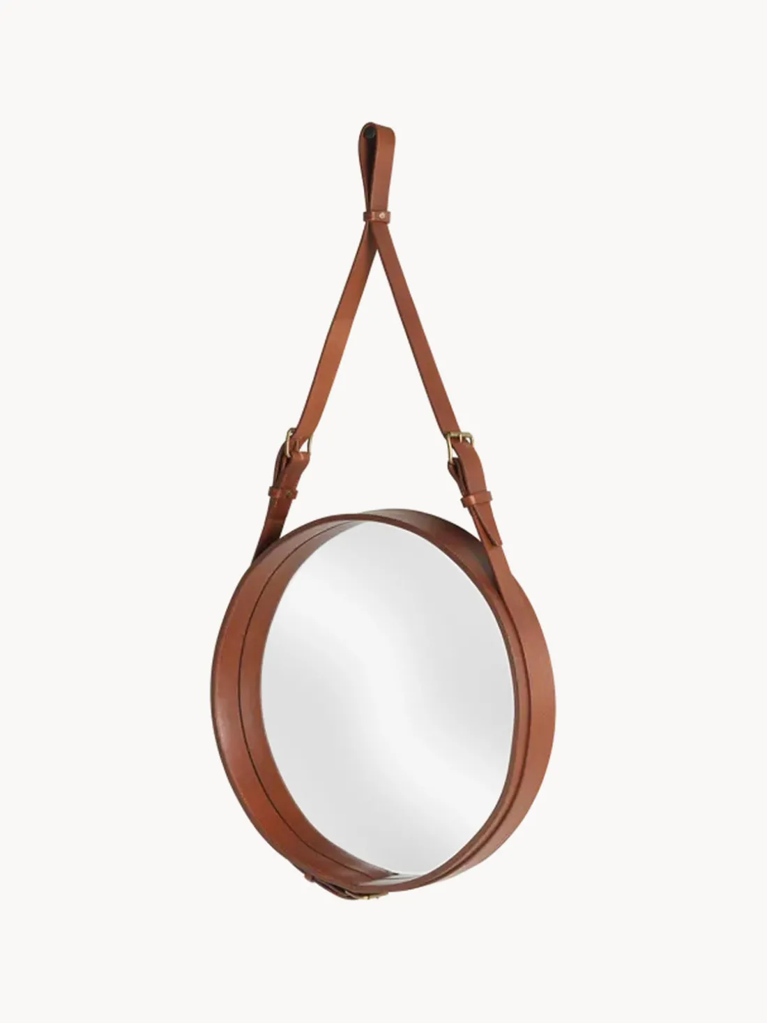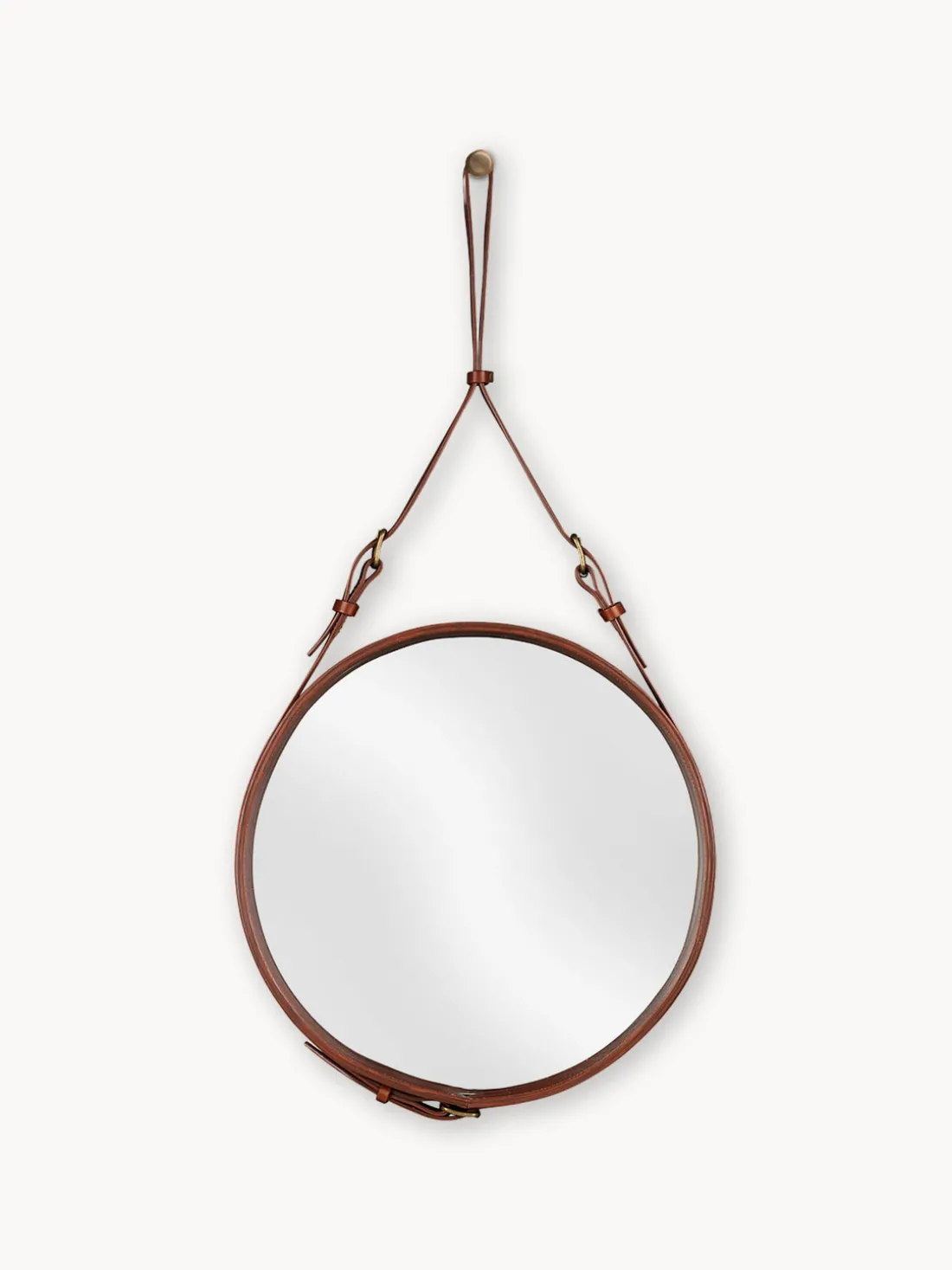 En 1950, Jacques Adnet se asoció con una famosa casa de moda francesa para desarrollar una colección de muebles y accesorios de interior revestidos de cuero, discretos pero lujosos. Conocido como un pensador innovador, Adnet fue uno de los primeros diseñadores en combinar el cuero con el cristal. El intemporal espejo de pared Adnet añade un valor escultórico a cualquier pasillo, cuarto de baño o salón, y los tres tamaños pueden combinarse favorablemente para crear una expresión excepcional.