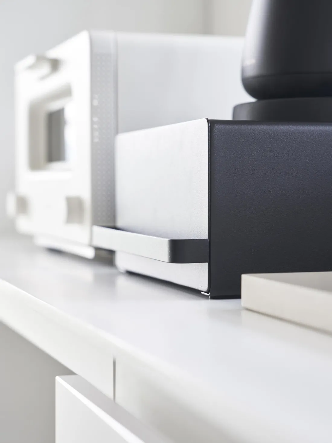 Esta estantería es una solución práctica para organizar el mueble de cocina. El cajón con divisor ajustable es ideal para guardar bolsitas de té o café, mientras que el estante ofrece espacio para los electrodomésticos de la cocina.
