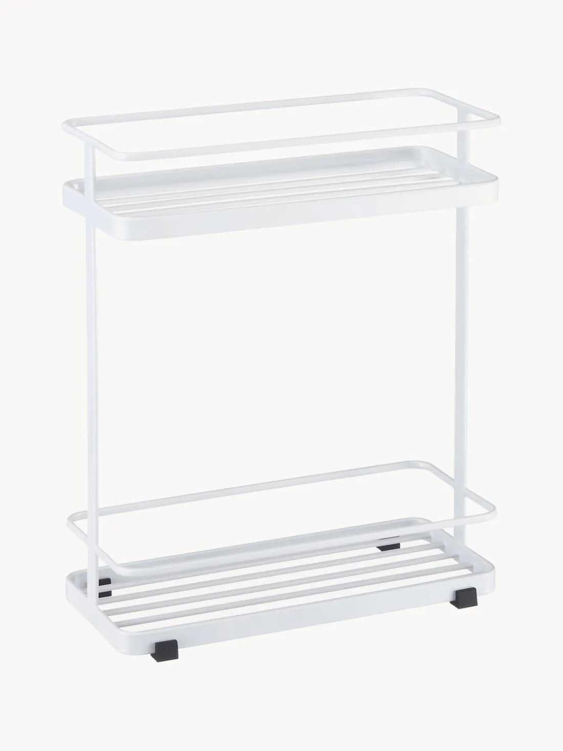 Organiza tu baño con la ayuda de esta moderna y práctica estantería. Gracias a la base abierta, el agua fluye inmediatamente y tus botellas de champú permanecen limpias y secas. Puede utilizar los ganchos incluidos para fijar objetos más pequeños, como esponjas de ducha.