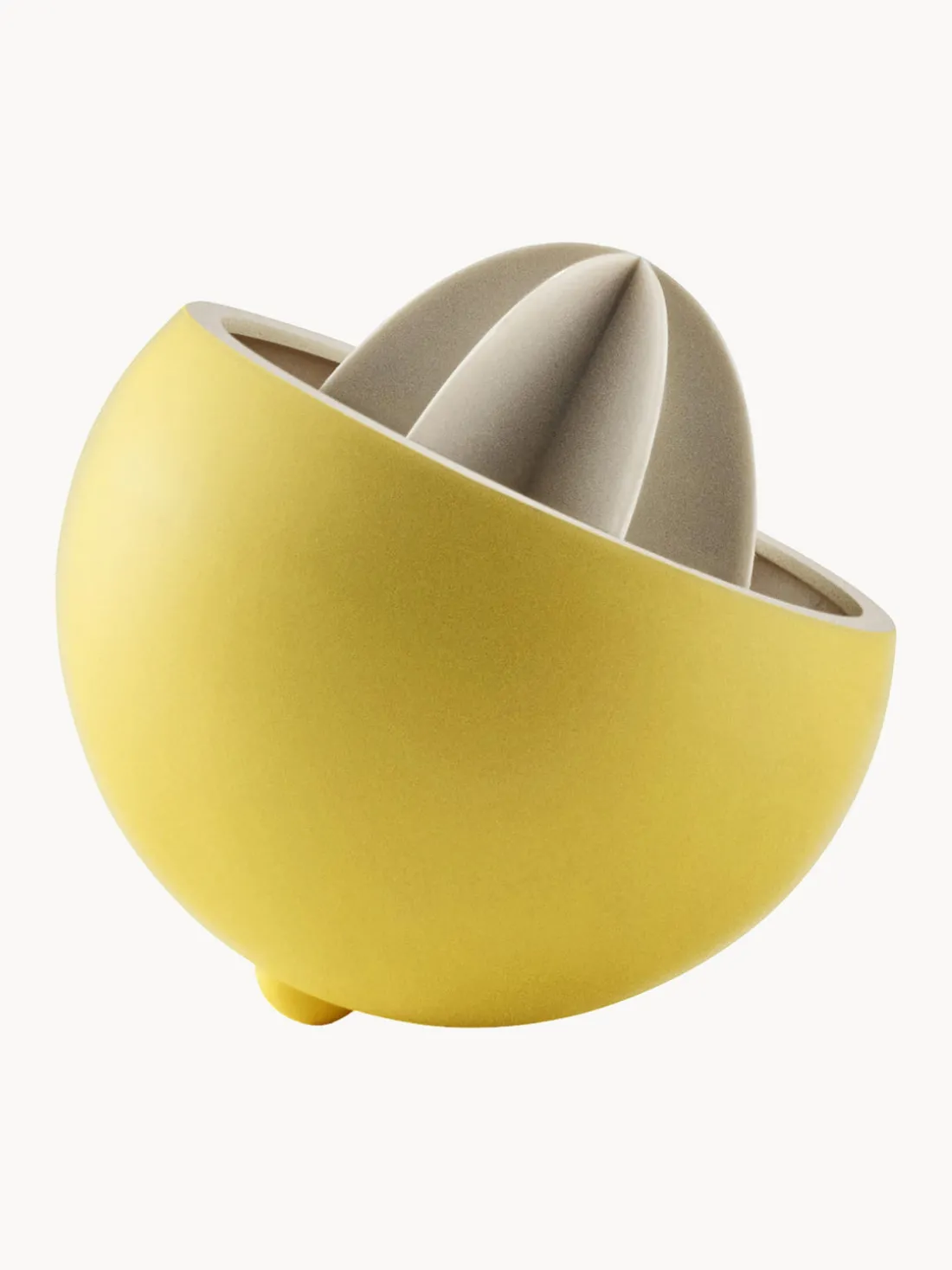 Con este funcional exprimidor de cítricos, cuya forma indica claramente su finalidad, se pueden exprimir cítricos sin esfuerzo. La superficie nudosa ofrece un buen agarre al exprimir la fruta, y las estrechas ranuras en el borde aseguran que las semillas permanezcan en la prensa cuando se vierte. Gracias a su forma, el exprimidor permanece siempre en posición vertical y es fácil de limpiar después de su uso.
