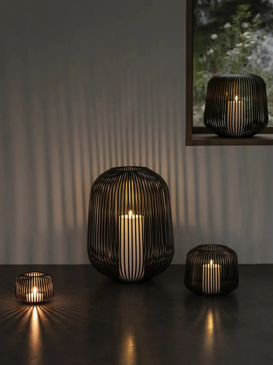 Los delgados soportes de acero con recubrimiento en polvo transmiten una ligereza elegante combinada con un toque rústico. El diseño atemporal de acero hace de LITO un verdadero punto de atracción que irradia hermosos efectos de luz y un ambiente atmosférico.
