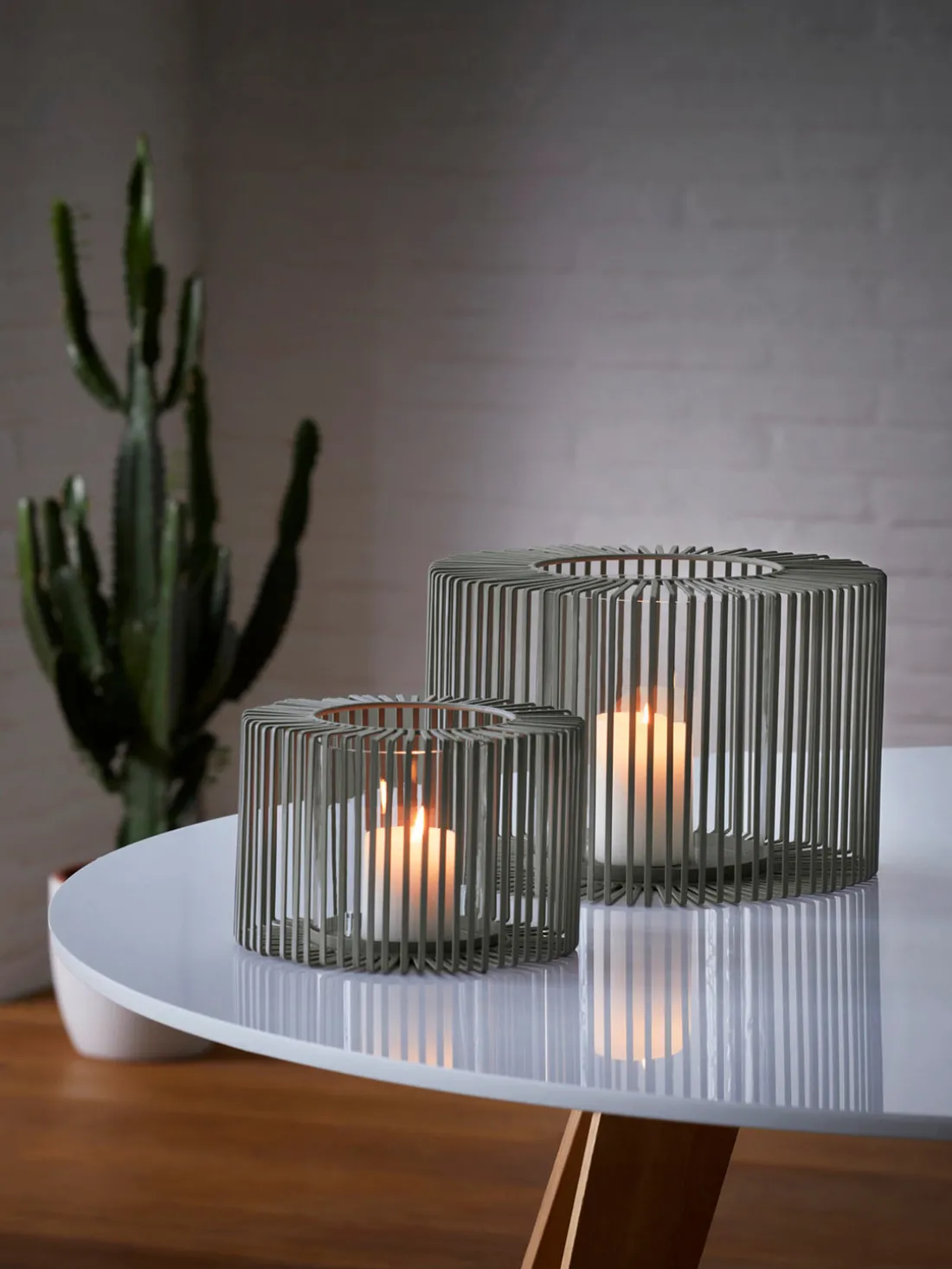 Estas farolas ultrachic se ven increíblemente bien incluso antes de encender la primera vela. Durante el día, se puede ver una fascinante y delicada rejilla casi arquitectónica, como una escultura. Pero es en las primeras horas de la tarde cuando la estructura revela toda su belleza con un cautivador juego de luces. Gracias al cilindro de cristal protector para velas pilar, OSLO es especialmente adecuada para su uso en exteriores.