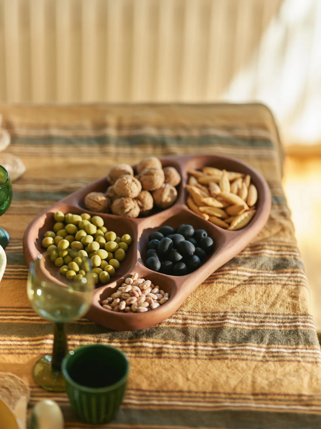 Esta bandeja cuidadosamente tallada a mano en fina madera de acacia es un complemento para la presentación de tu comida. Los compartimentos orgánicos, similares a guijarros, son perfectos para exponer tus frutas, frutos secos, quesos y embutidos favoritos. Cada bandeja es una obra de arte, que resalta el veteado natural y los tonos cálidos de la madera. No es sólo una pieza funcional, sino también un impresionante adorno para cualquier mesa.