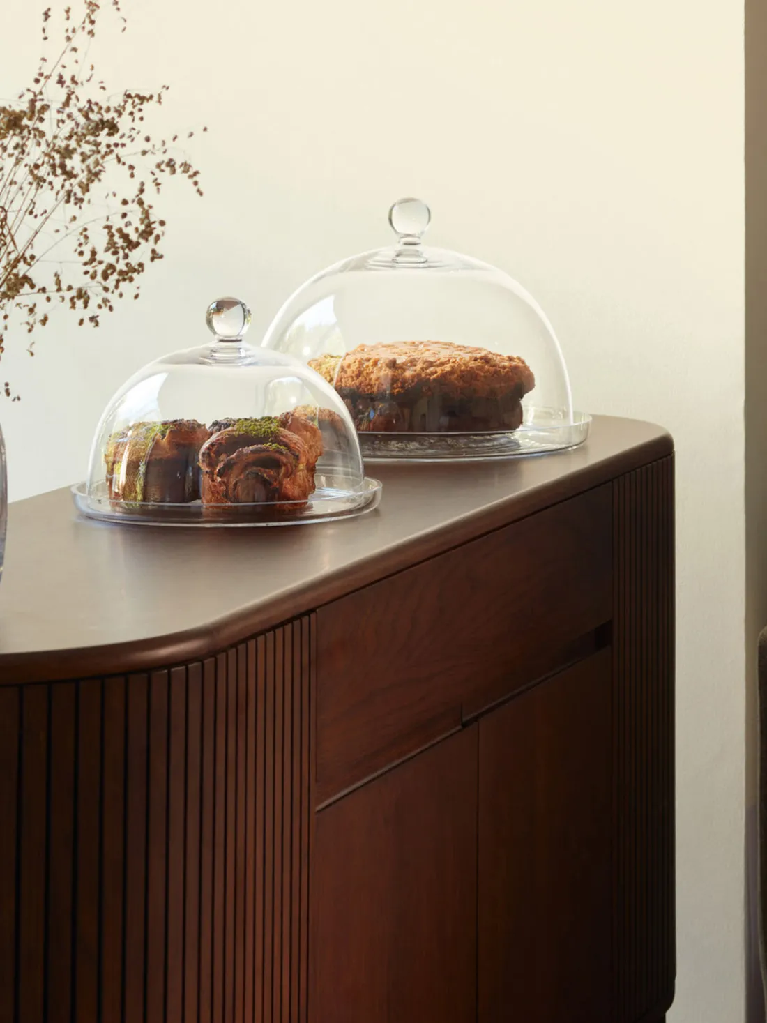 VIENNA es una versátil colección de campanas y soportes para pasteles de vidrio artesanal con formas atemporales que aportan un toque de elegancia clásica a cualquier presentación.