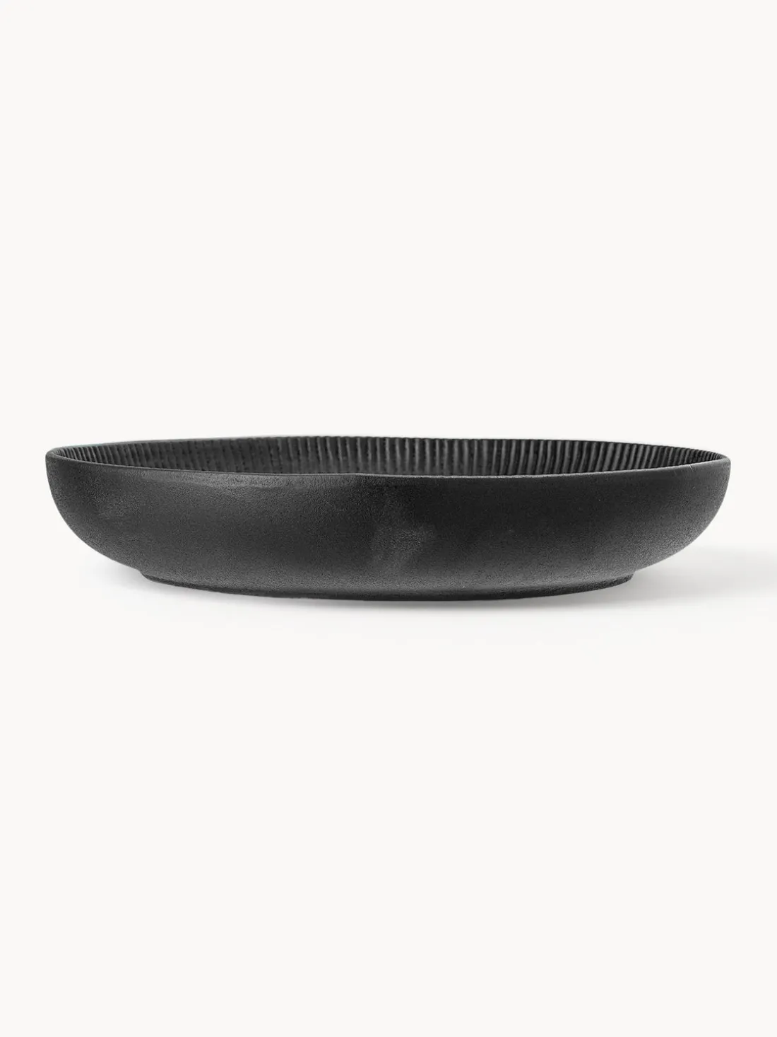 La nueva colección de vajilla Neri de Bloomingville se caracteriza por su aspecto de hierro fundido en color negro mate. Las finas ranuras se extienden como rayos desde el centro por toda la superficie.