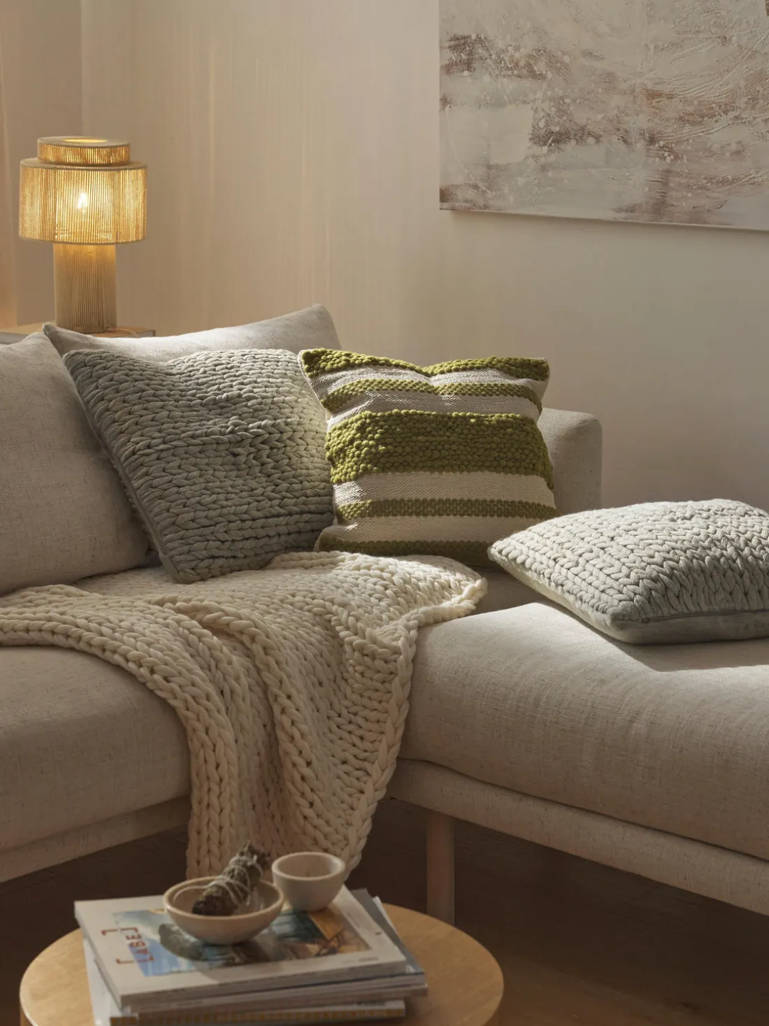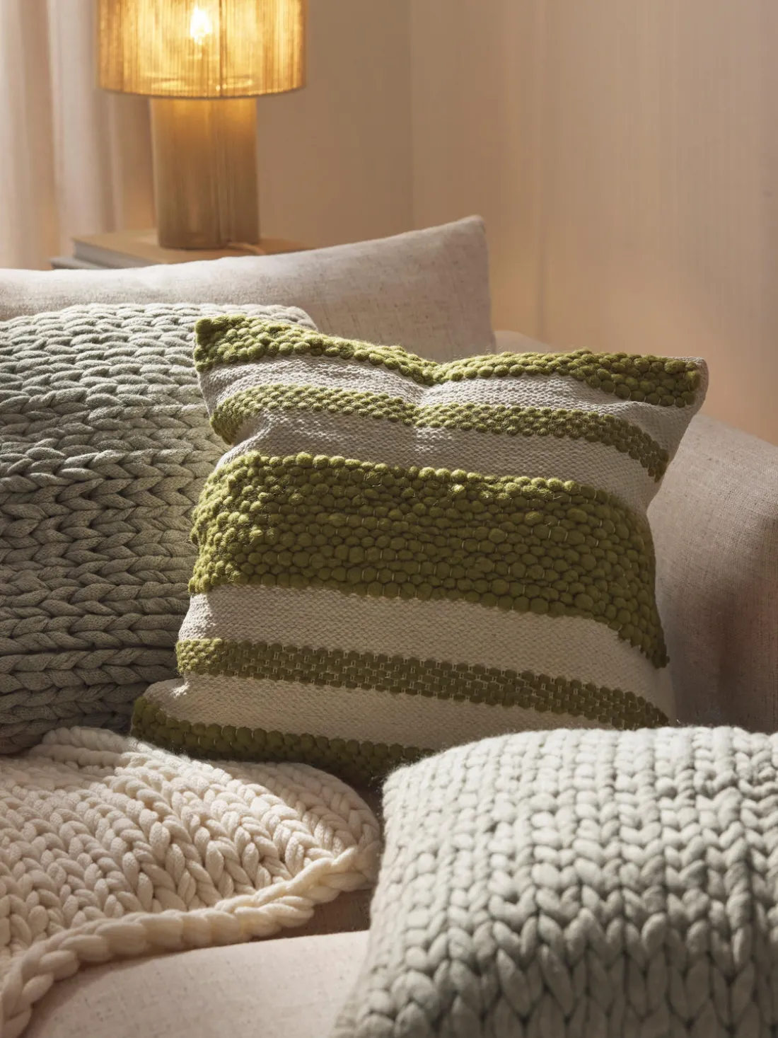 ¡ADYNA es el complemento perfecto para tu sofá o cama! La colección convence por su diseño de punto grueso y es versátil. ¡Imprescindible para cualquiera a quien le guste estar cómodo en casa!