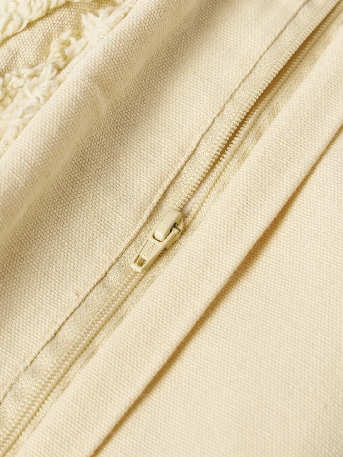 La funda de cojín con adorno decorativo con mechones se entrega sin relleno, tipo de cierre con cremallera.
