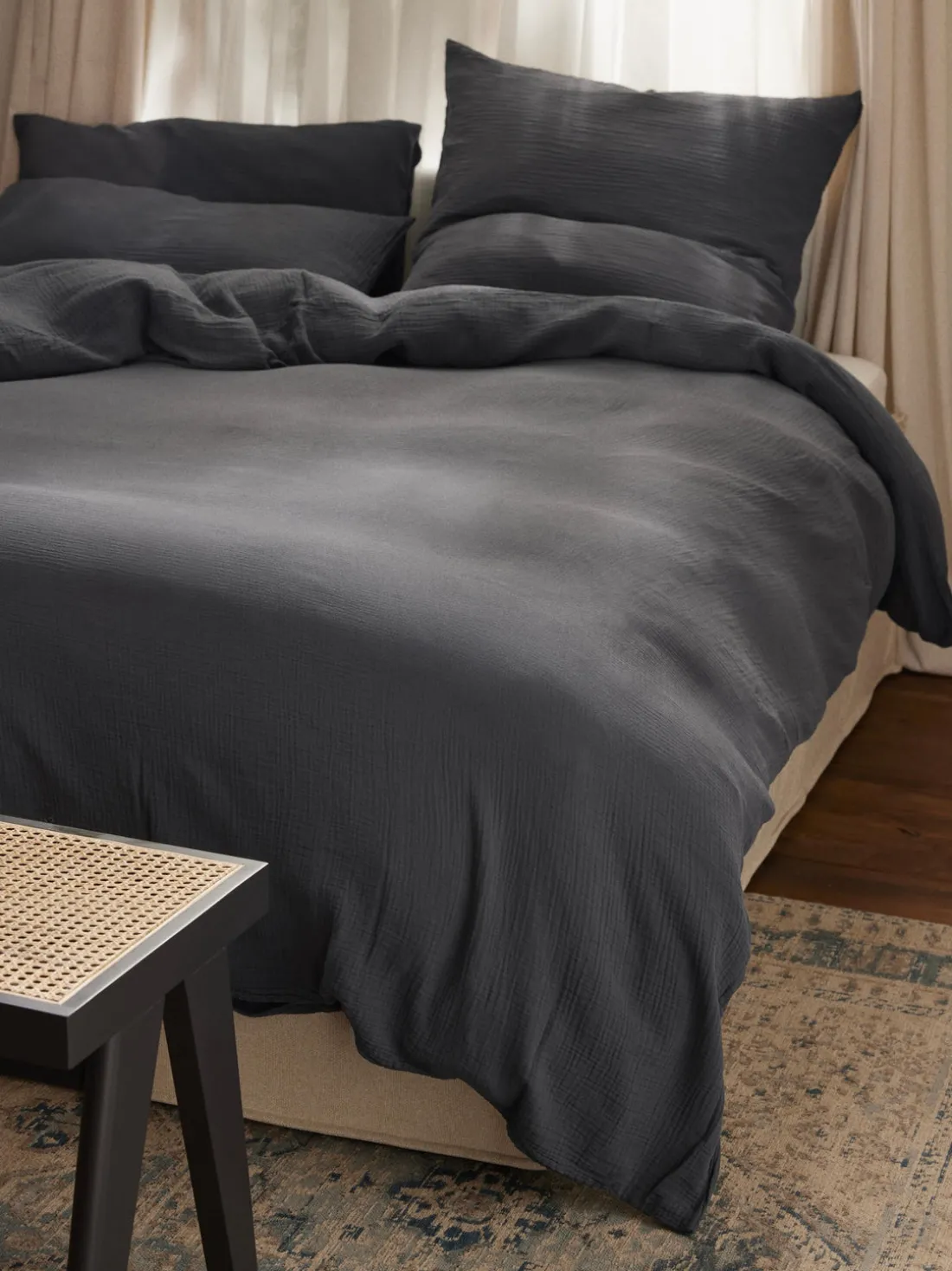 Funda nórdica de muselina, tipo de cierre con botones. Hecho en Portugal.