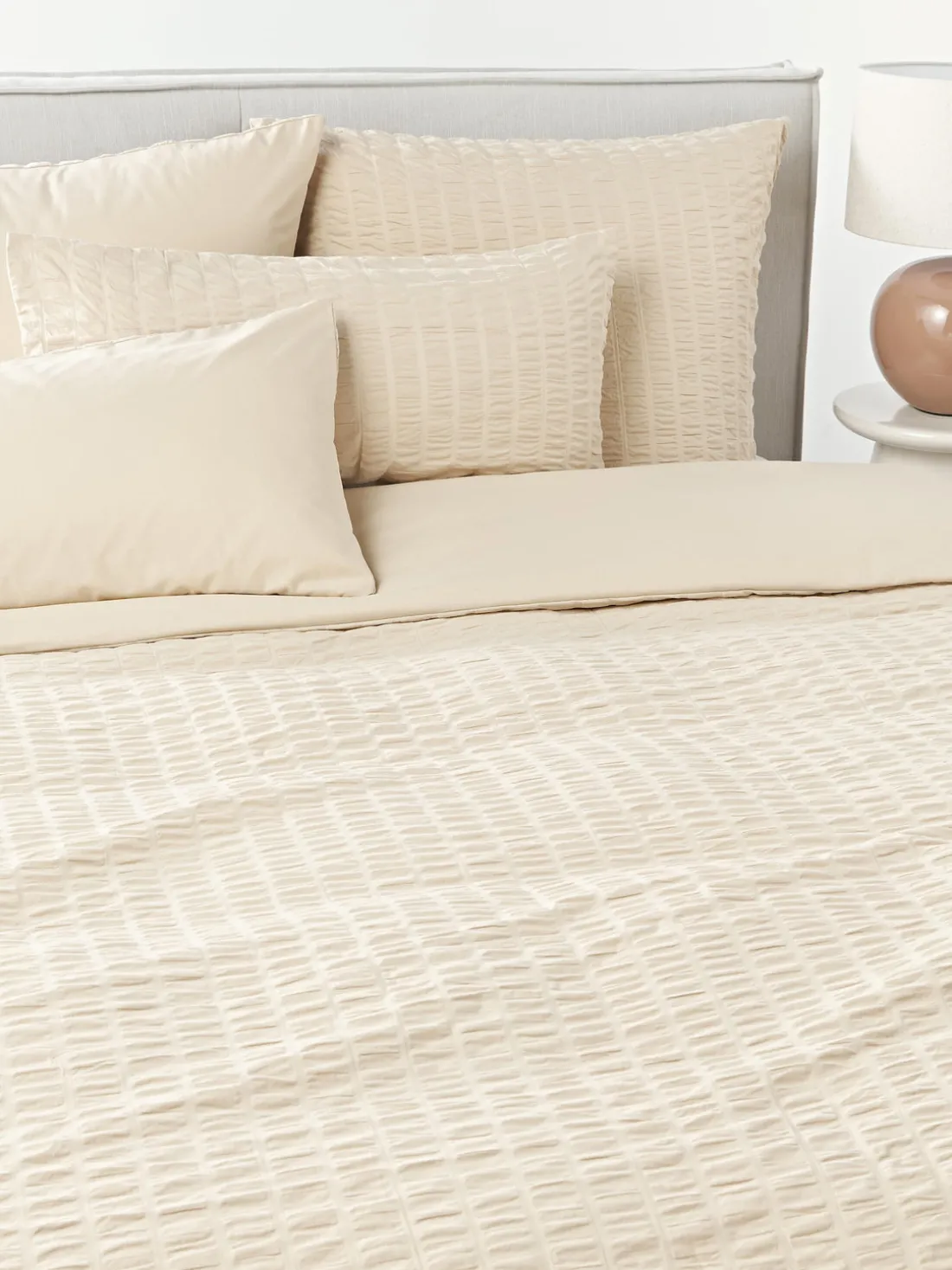 Funda nórdica de algodón con diferentes texturas en la parte delantera y trasera, tipo de cierre de botones.