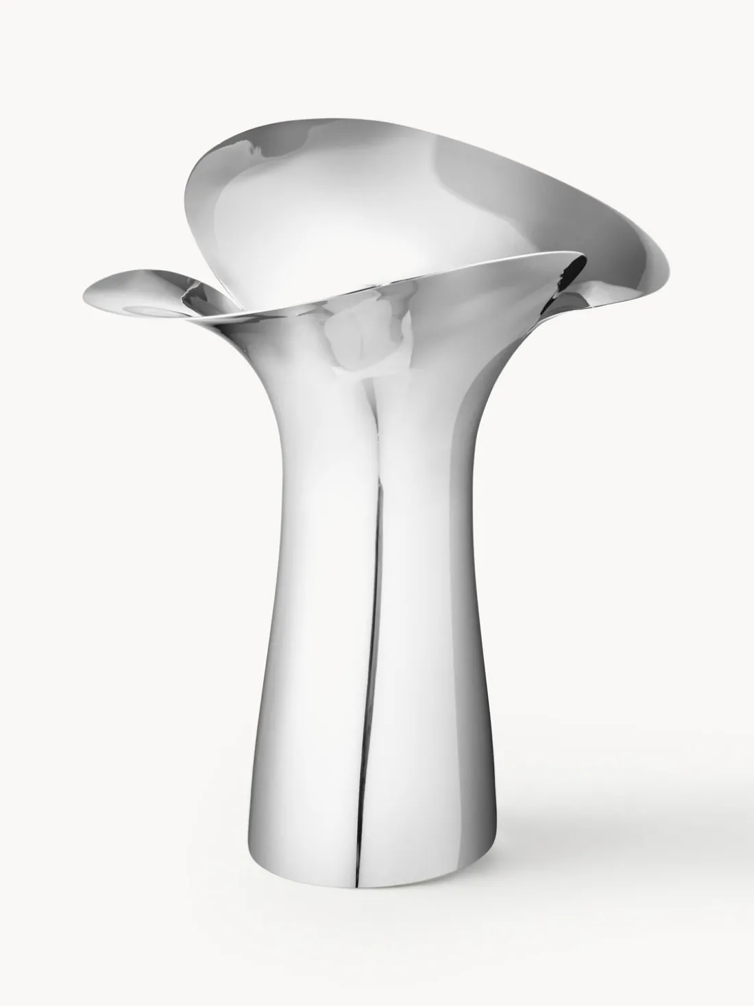 La diseñadora Helle Damkjær es una verdadera artista que primero crea todas sus piezas a mano a partir de arcilla, lo que da a sus objetos calidez y expresión táctil a la que uno no suele estar acostumbrado a partir de materiales duros como el acero inoxidable. Su colección Bloom para Georg Jensen sigue siendo una de las más populares y atemporales. Inspirado en el momento en que un capullo de flor se abre para revelar sus pétalos, este expresivo jarrón captura la alegría de la primavera.