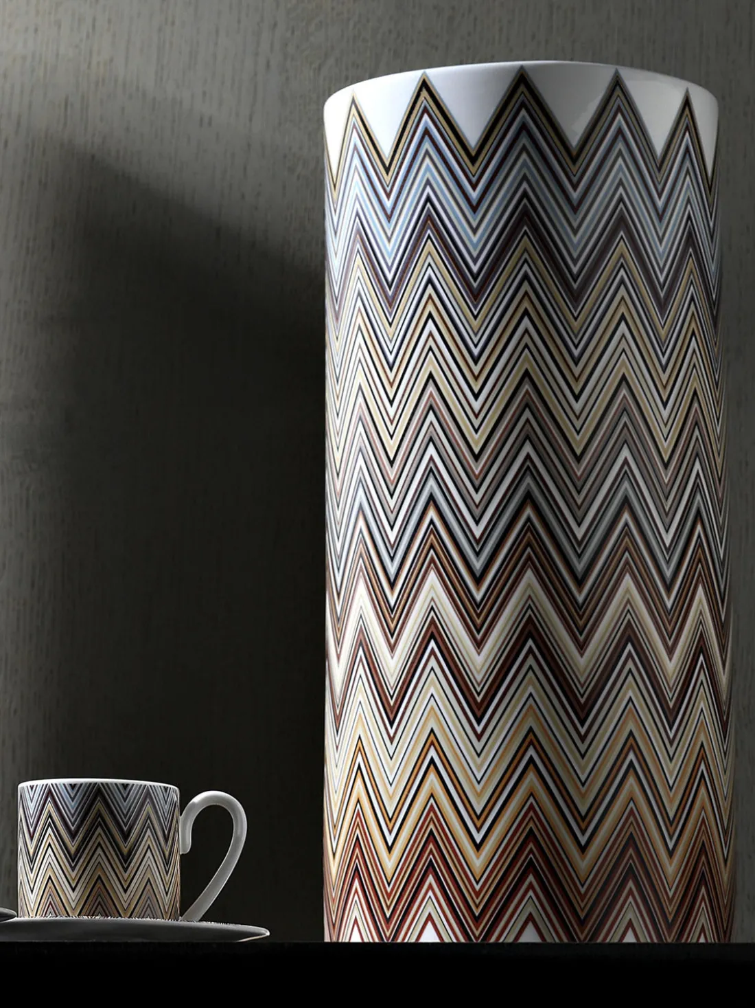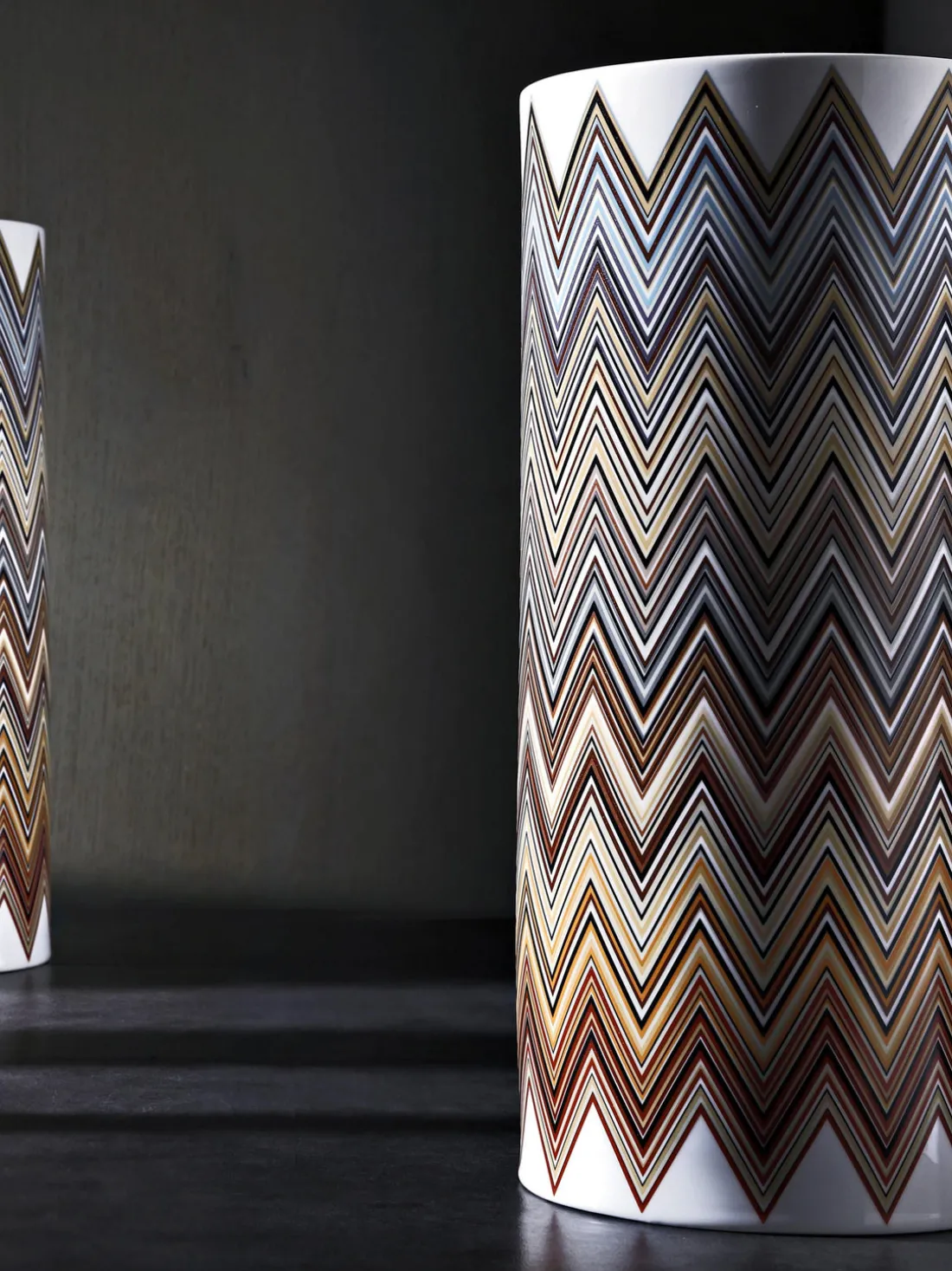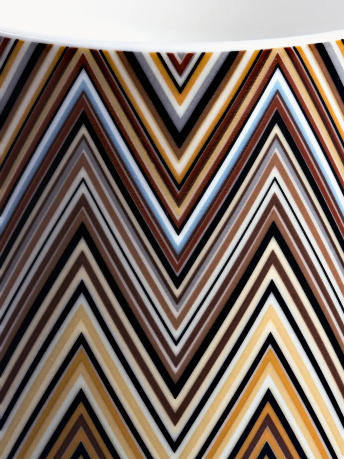 Las piezas con el motivo JARRIS de Missoni son perfectas para los amantes de la vajilla que aprecian el encanto clásico del blanco con un toque de color. El jarrón Missoni ofrece una visión óptica con patrones dinámicos de zigzag.