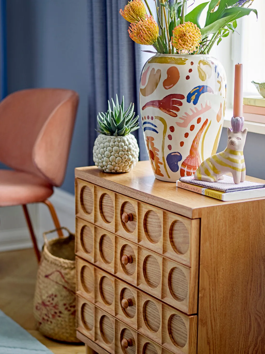 El jarrón HORUS de Bloomingville presenta un motivo expresivo que combina hábilmente tonos cálidos y fríos para crear una pieza visualmente impactante. Su diseño atrevido y creativo lo convierte en un verdadero punto focal, ya sea exhibiendo flores frescas o como pieza decorativa independiente. Diseñado para impresionar, aporta un toque artístico a cualquier espacio.