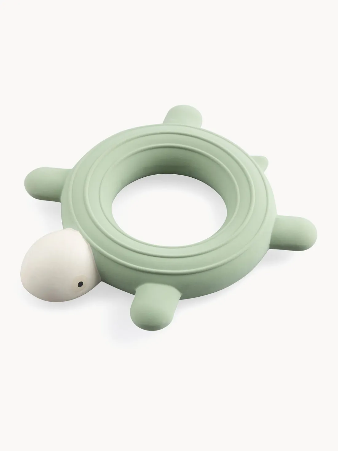 El divertido anillo de tortuga tiene cabeza y patas que el bebé puede morder para aliviar las encías doloridas durante la dentición. También tiene ranuras que sobresalen ligeramente de la superficie, lo que hace que el anillo sea agradable al tacto y especialmente fácil de sujetar.