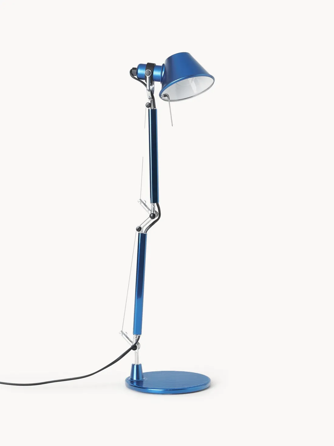 Tolomeo Micro tiene el inconfundible diseño típico de Tolomeo: el brazo ajustable, la cabeza ajustable en todas las direcciones y los soportes con sistema de equilibrio de muelle.