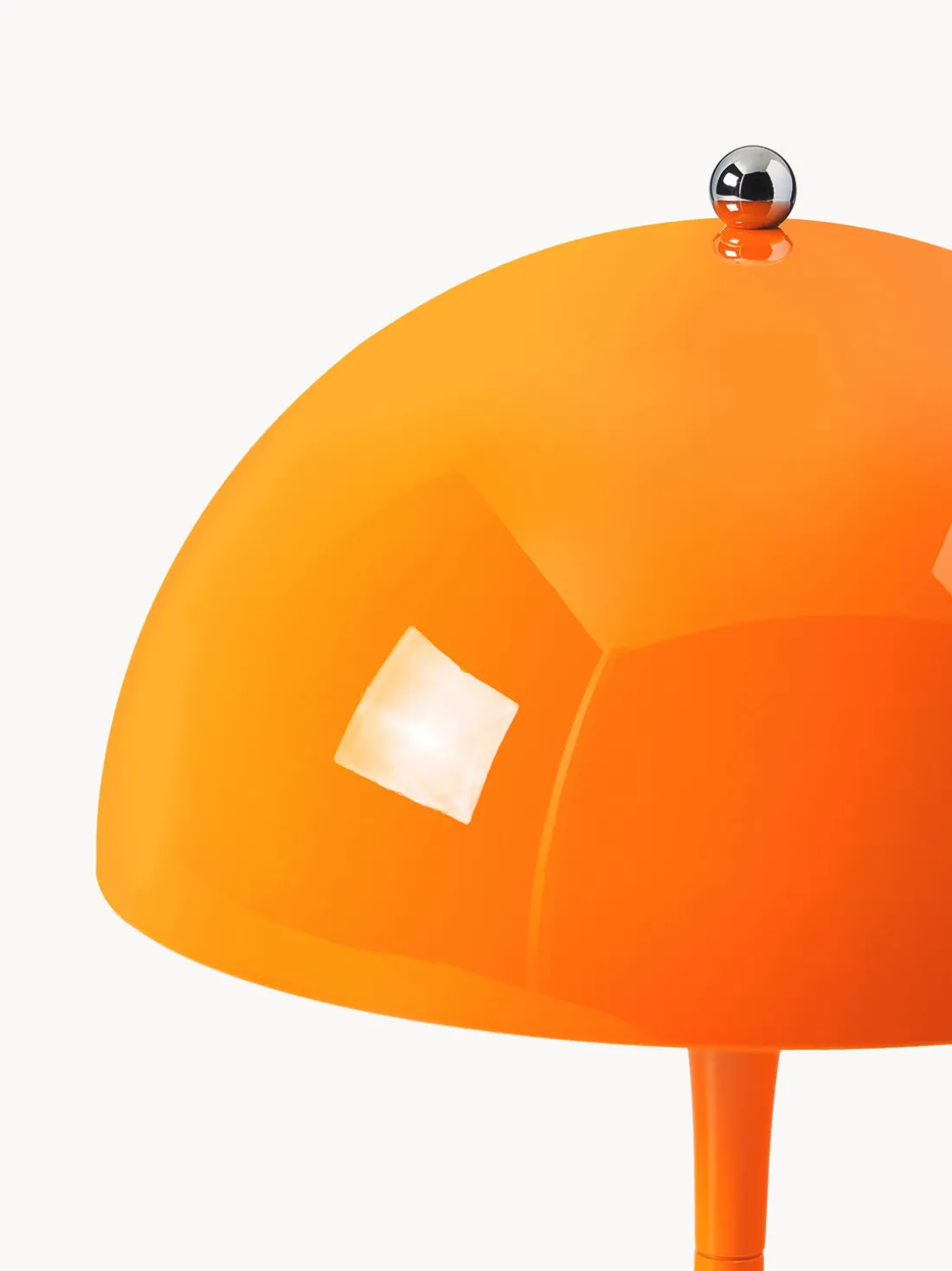 La PANTHELLA fue diseñada en 1971 por Verner Panton en colaboración con Louis Poulsen. Su inusual diseño no sólo refleja el estilo lúdico de Panton, sino que también proporciona una luz única y agradable gracias a sus formas orgánicas. La pantalla semiesférica emite la mayor parte de la luz hacia abajo, donde se refleja en la base en forma de trompeta y baña el entorno con una luz suave y difusa.