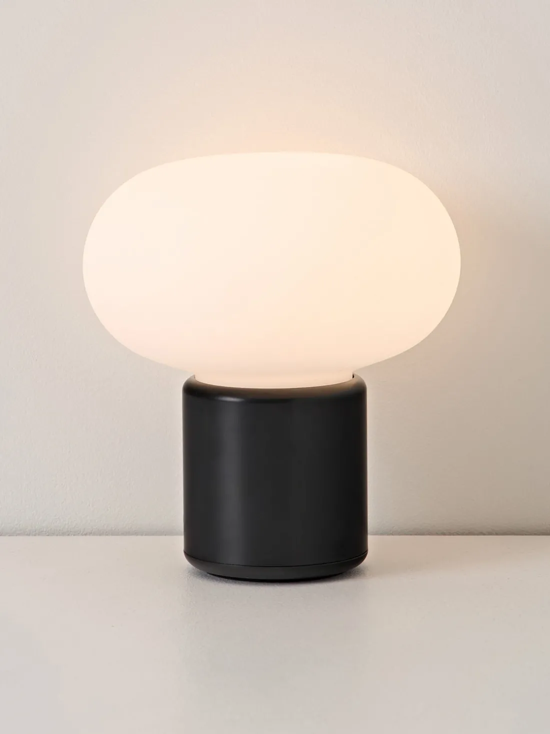 La luz se enciende simplemente girando la parte superior de la lámpara, que se difunde suavemente a través de la pantalla blanca. La intensidad se puede ajustar en tres niveles tocando ligeramente la parte inferior.
