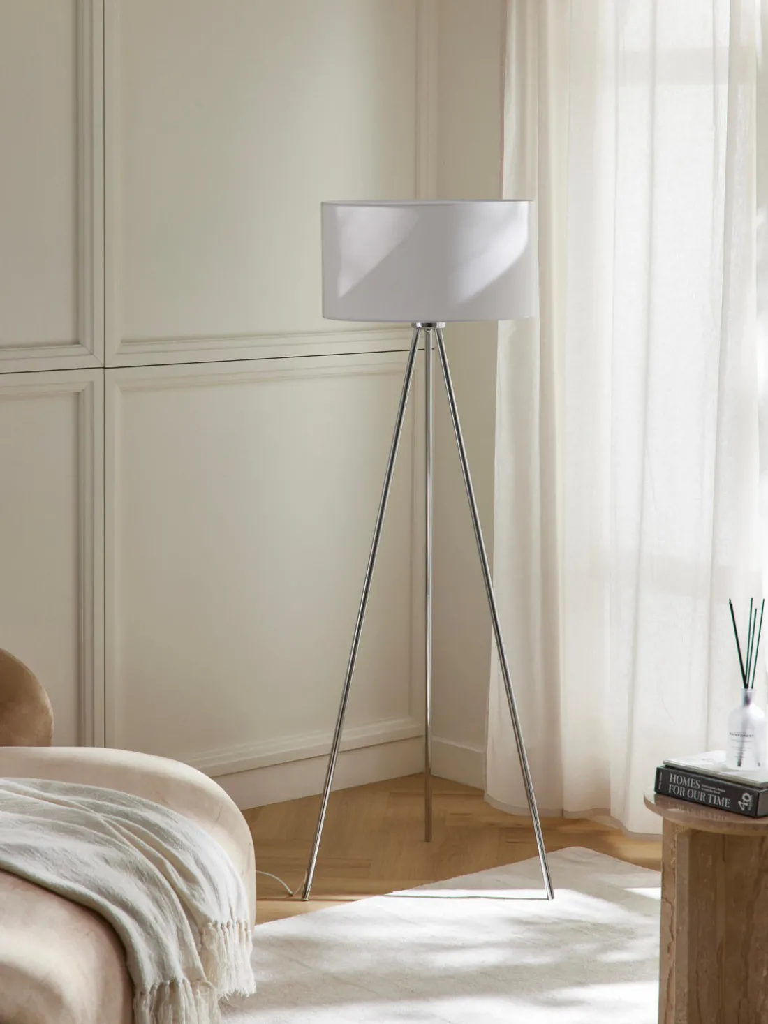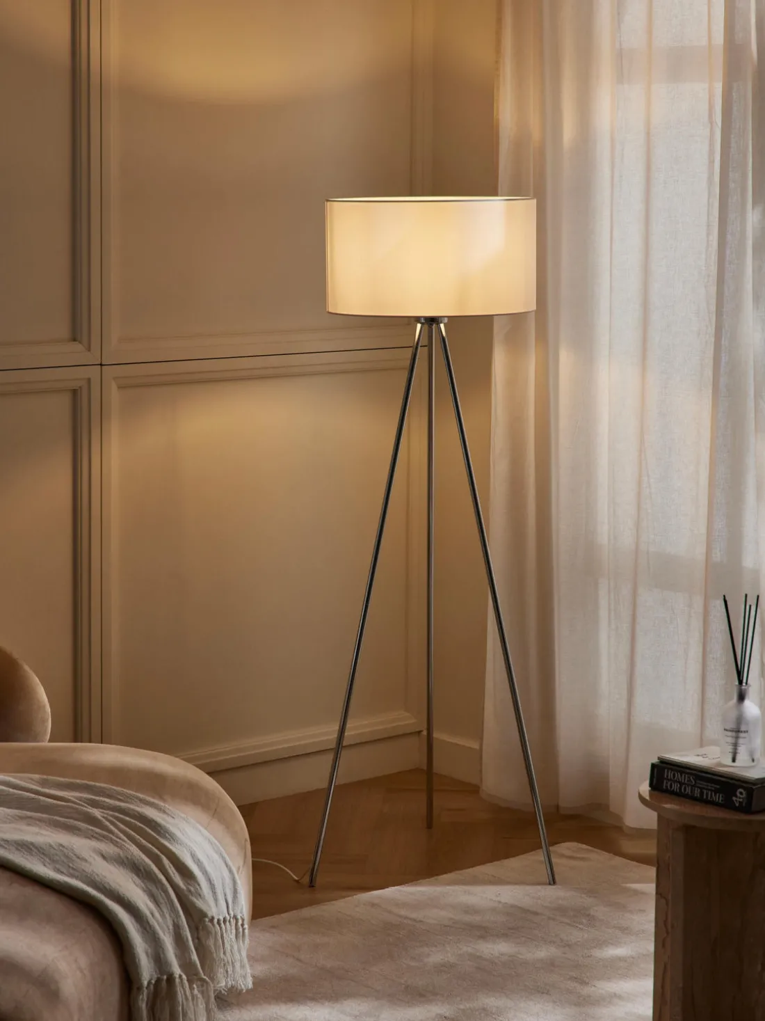 Ten en cuenta que las lámparas de trípode requieren más espacio que las lámparas de pie estándar debido a su base amplia.
