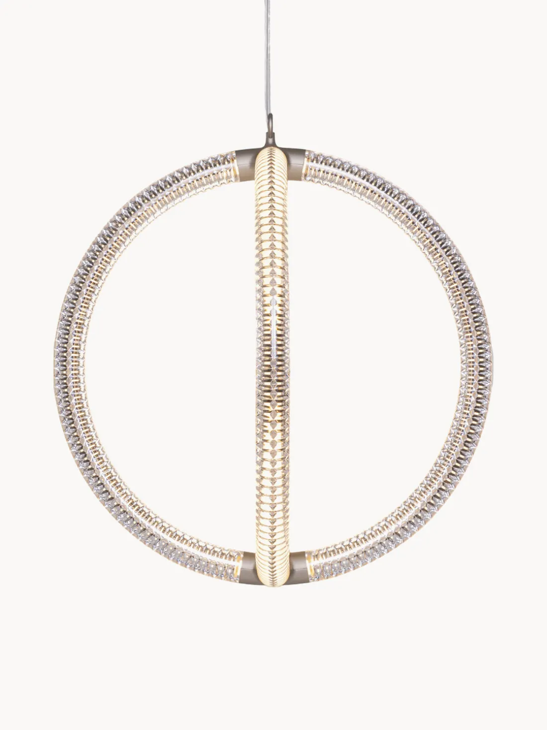 Inspirada en la grandeza del vidrio de Murano y la elegancia matemática de la proporción áurea, LUMINORA LIGHT fusiona artesanía y modernidad. Su diseño flotante encarna simplicidad y complejidad, creando una escultura luminosa donde la estructura es la propia luz. El patrón óptico de diamante en forma de V y los tubos LED transparentes crean un efecto hipnotizante.