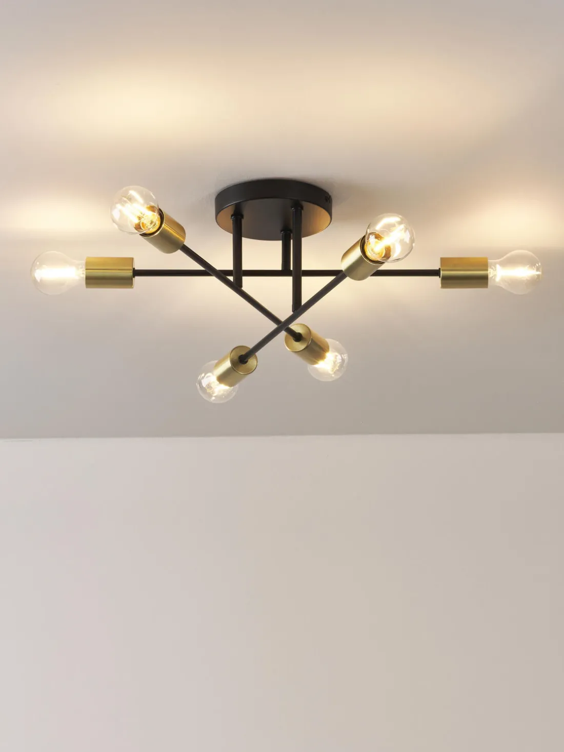 Esta lámpara de techo destaca por su diseño minimalista y líneas claras que se integran perfectamente en cualquier decoración. Disponible en tres acabados, la lámpara añade un look fresco y contemporáneo a tu hogar, adaptándose tanto a interiores modernos como clásicos. Además de negro y blanco, puedes optar por un modelo con detalles en oro, que añade un toque discreto de glamour y sofisticación.