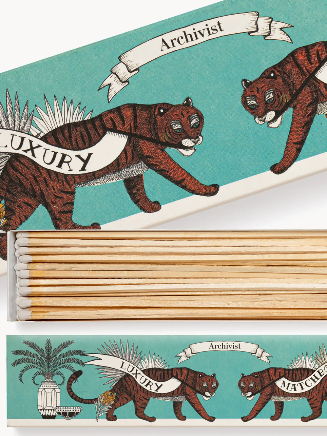Caja: verde turquesa, marrón oscuro, blanco Off White