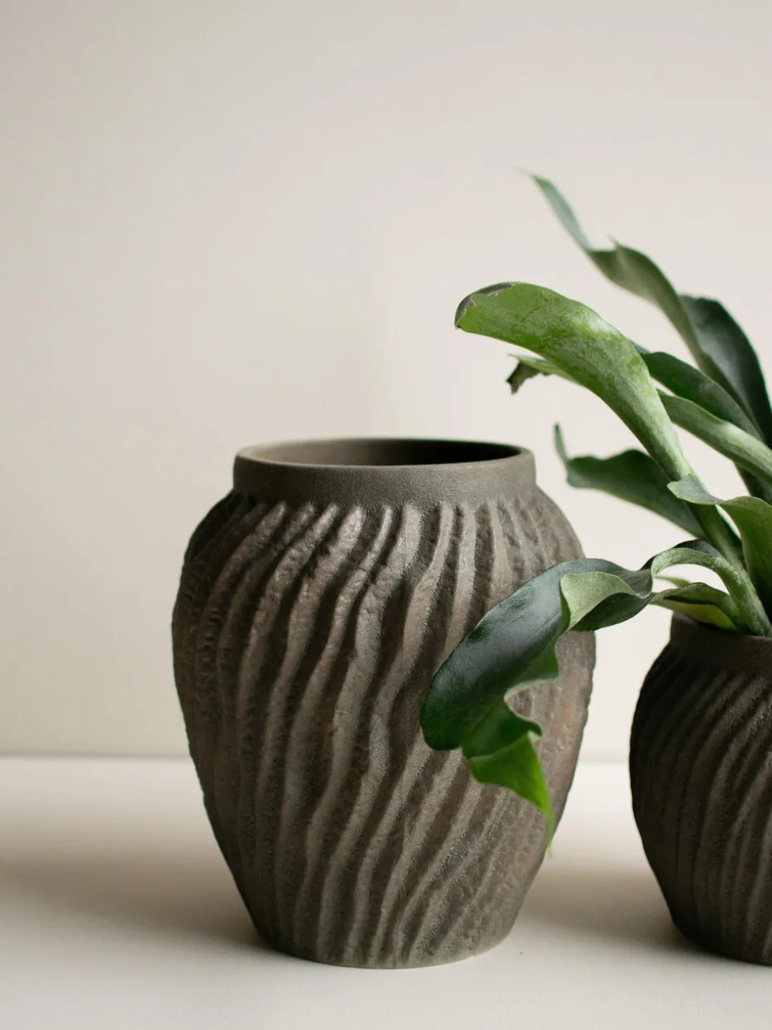 El macetero RAW impresiona por su llamativa estructura acanalada y su elegancia atemporal. Un diseño orgánico y plástico que le da a tus flores un carácter fuerte.