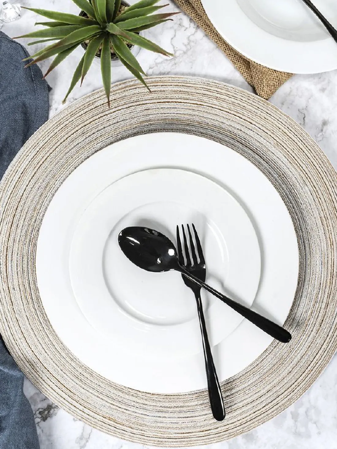 Estos manteles individuales SAVAGE aportan un encanto natural a tu mesa con su distintivo diseño de espiral tejido. Perfectos para comidas informales y cenas, protegen tus superficies y crean una mesa de estilo effortless. Este set de 6 te asegura que siempre estarás listo para invitados.