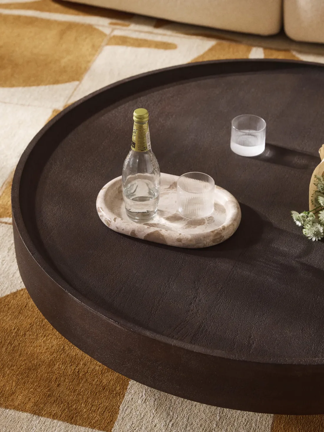 Dimensiones de la base de la mesa: Ø 80 cm (debajo del tablero), alto 7,5 cm