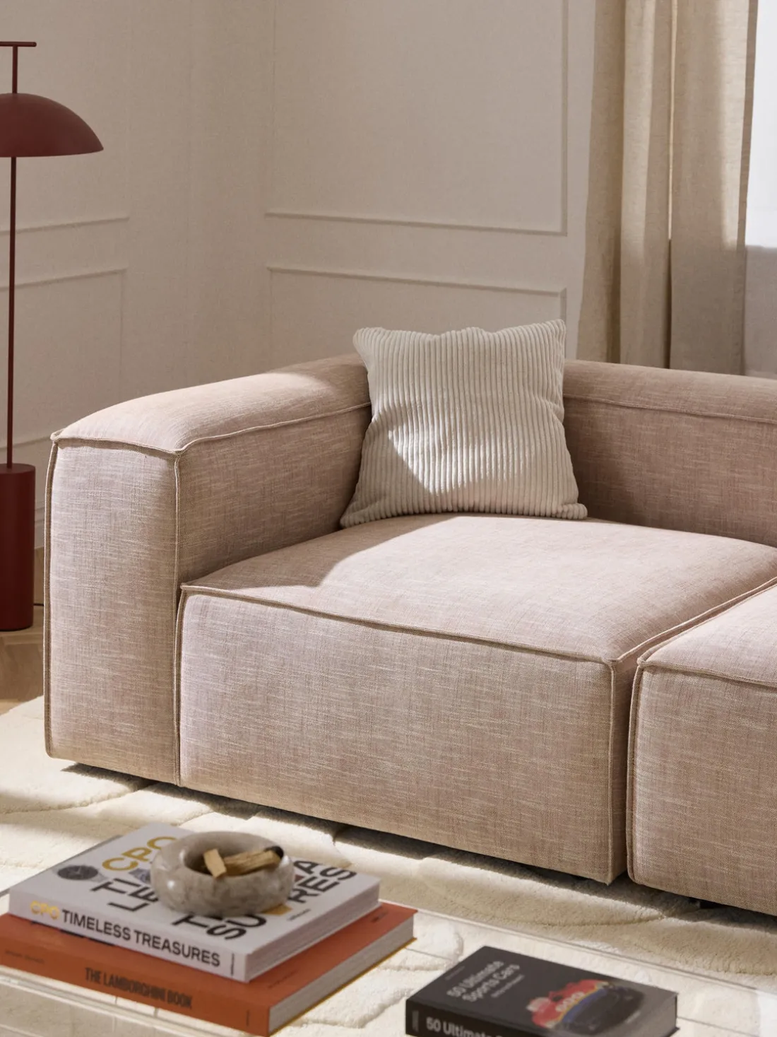 También puedes descubrir otros productos a juego en nuestra gama que se adaptan perfectamente a LENNON: la consola LANA no solo ofrece espacio de almacenamiento adicional, sino que también es un elemento decorativo que se adapta exactamente a las dimensiones de LENNON. El taburete LENNON con bandeja de madera se puede utilizar de forma flexible como mesa de centro o como elemento intermedio en el sofá, para conseguir un aspecto elegante y espacio de almacenamiento práctico. No te olvides del complemento perfecto: cojines de sofá en todos los tejidos y colores de LENNON para un look perfecto, ya sea uniforme o en un estilo mix & match.