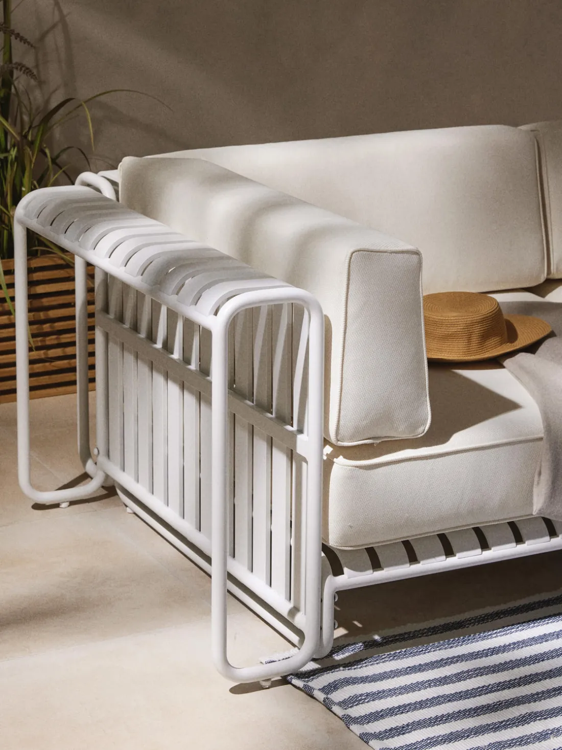 Para disfrutar del producto el mayor tiempo posible, debes protegerlo de la intemperie y asegurarte de que no esté expuesto a la lluvia directa. Para proteger el tapizado de la mejor manera posible, recomendamos colocar el producto bajo techo o cubrirlo cuando no está en uso.
