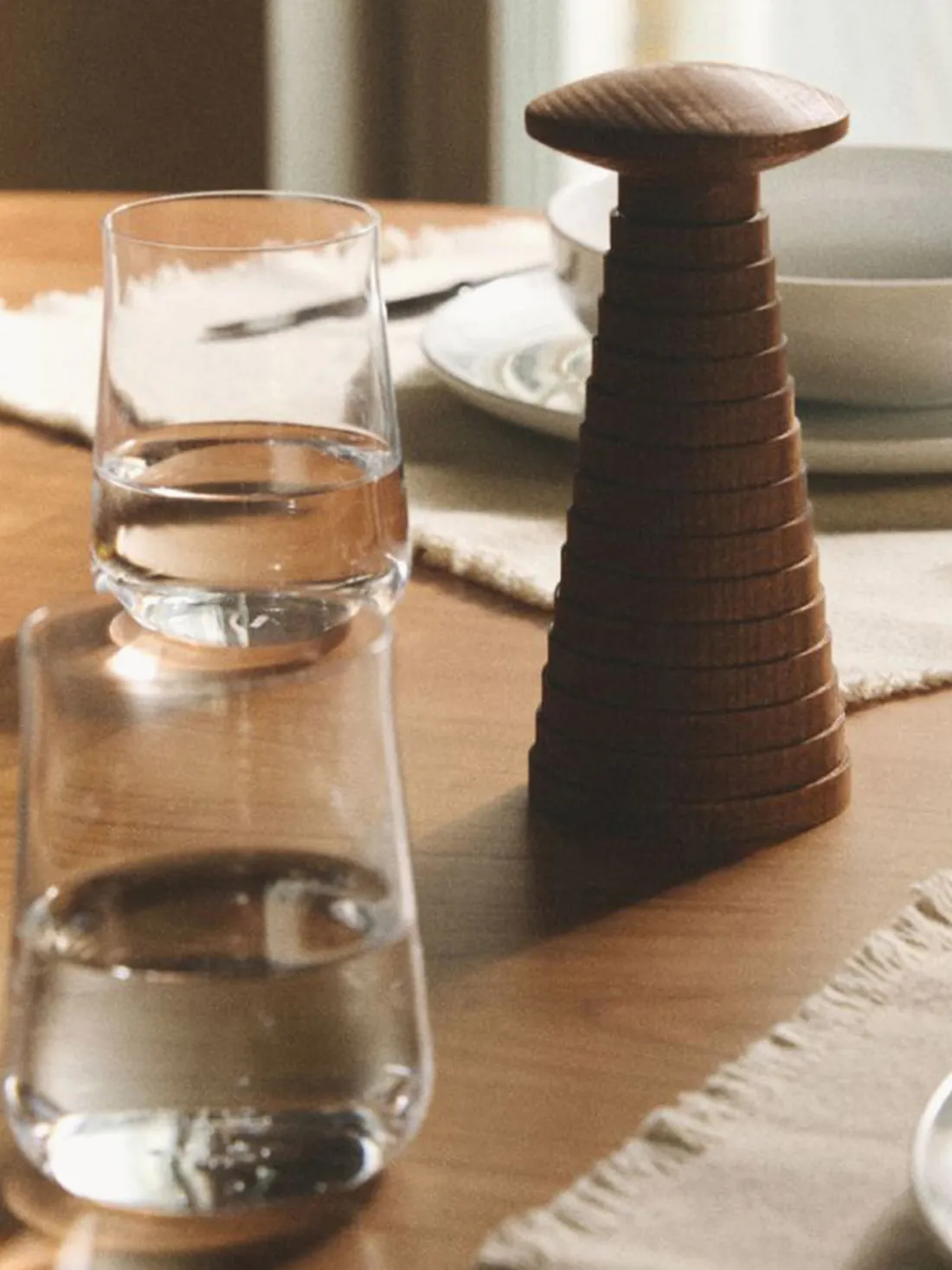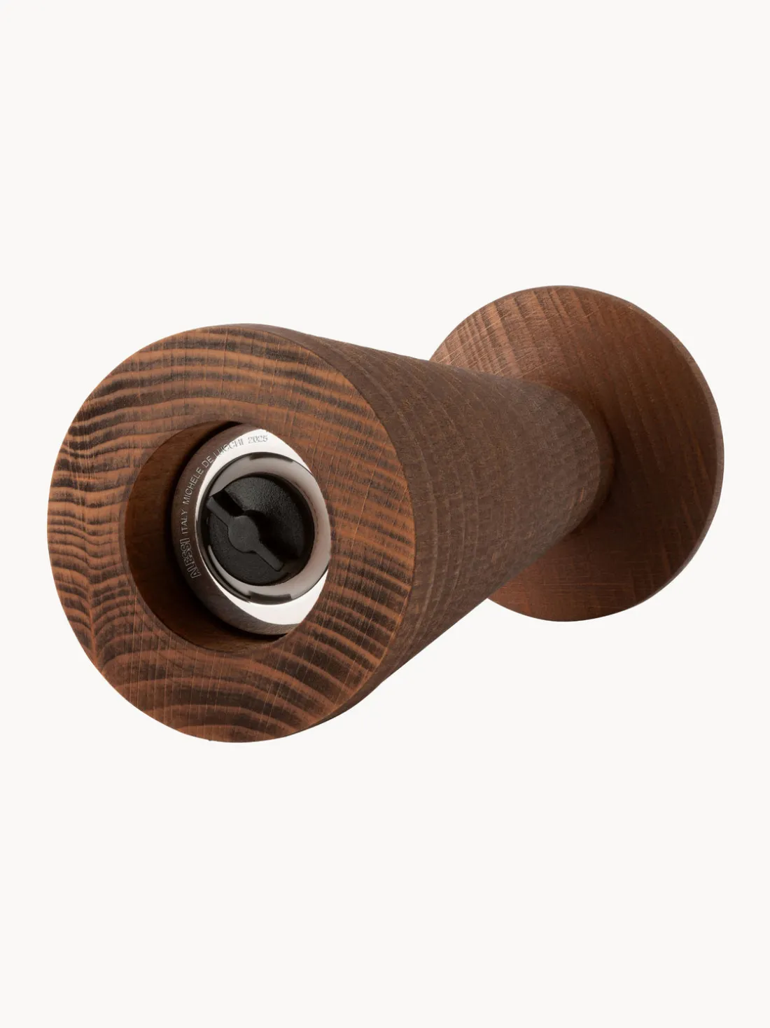 El molinillo de especias YUCATAN es un elegante objeto cotidiano diseñado por Michele De Lucchi que combina funcionalidad y forma escultórica al estilo del diseñador. Fabricado en madera de haya maciza teñida de marrón cálido y acabado con aceite natural, presenta una superficie táctil suave y un veteado de la madera distintivo, lo que hace que cada pieza sea única. Compacto pero expresivo, su forma inspirada en un tótem azteca aporta una presencia sutil pero llamativa a la mesa sin abrumarla visualmente. El mecanismo de molienda de cerámica ajustable garantiza versatilidad para la sal, la pimienta y diversas especias. El embudo metálico integrado, al que se accede por la parte superior, facilita el llenado, mientras que la base de acero inoxidable añade un toque de elegancia y garantiza la estabilidad.