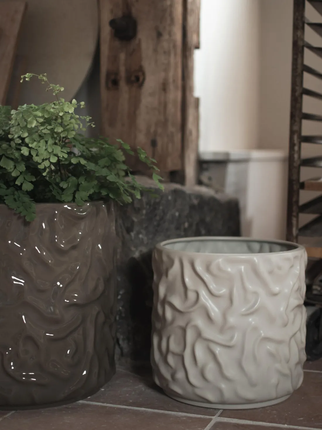 Una serie de macetas de cerámica suaves y modernas con influencias de las largas y suaves curvas de los textiles ondulantes. SWOON se convierte en una suave instalación en tu hogar o en la oficina. Como siempre que se diseña, la maceta debe ser tan hermosa con una planta como sin ella. Una colaboración de diseño con los talentosos Atta Ring & Maja Furenberg Ring de Studio In.