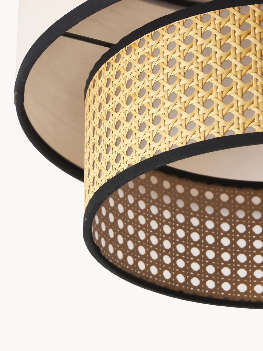 El diseño de la lámpara de techo Vienna se complementa con un esquema de colores distintivo. El dosel de la lámpara está acabado en negro mate, mientras que la pantalla está disponible en una elegante selección de tonos claros como marrón claro, negro y beige. Estas combinaciones de colores aportan una atmósfera cálida y acogedora a la habitación.