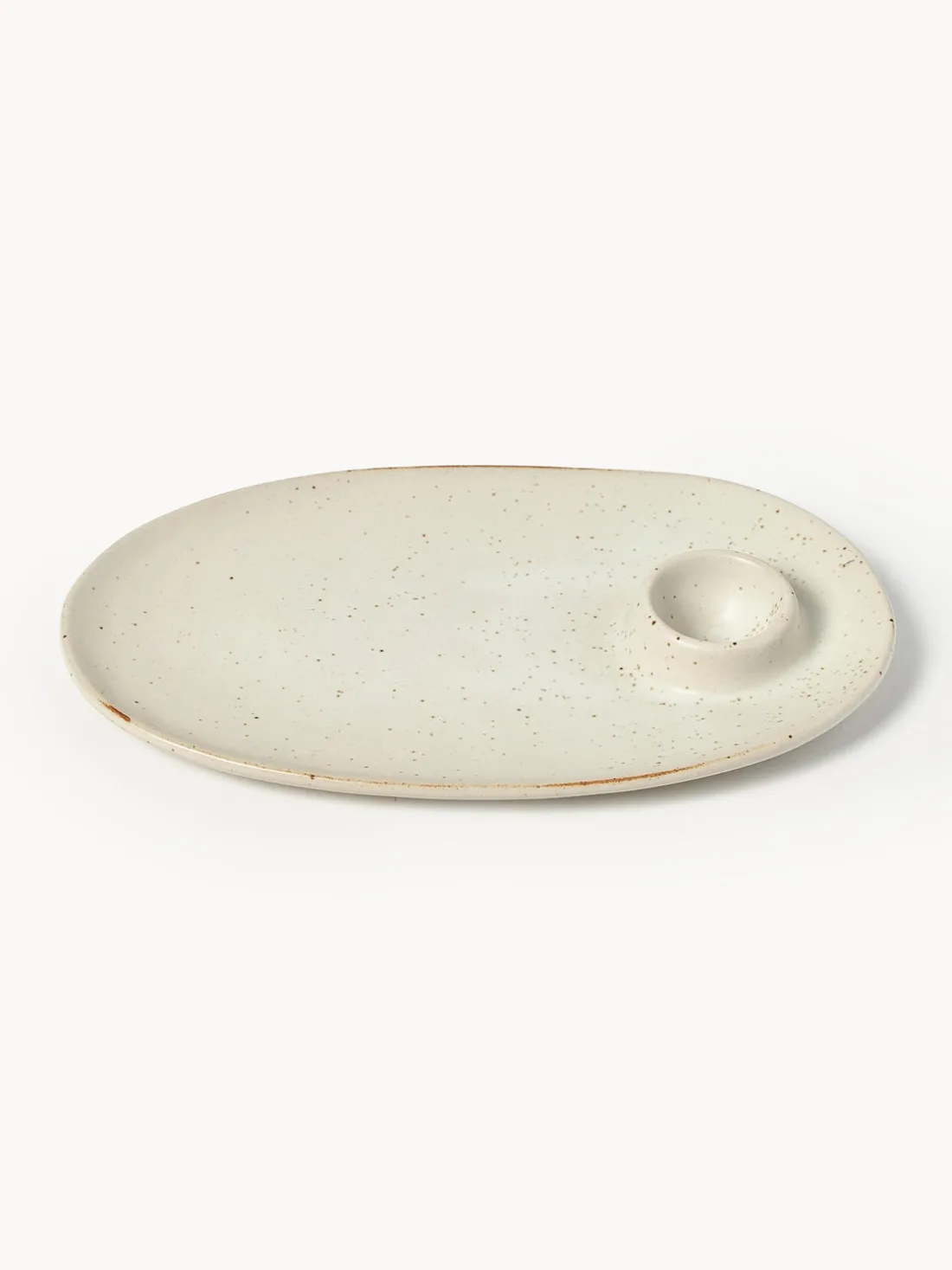 El esmalte semimate de todas las piezas crea una expresión única. Este plato ovalado con huevera integrada es un complemento perfecto para cualquier mesa de desayuno y además ofrece espacio suficiente para las tostadas de la mañana. Como hay una hendidura en la parte inferior de cada huevera, los platos pueden apilarse fácilmente cuando no se utilizan.