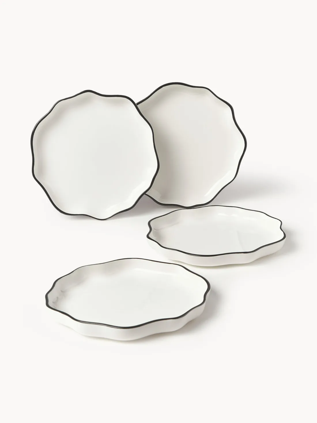 Platos postre de porcelana con volantes Bia, 4 uds.