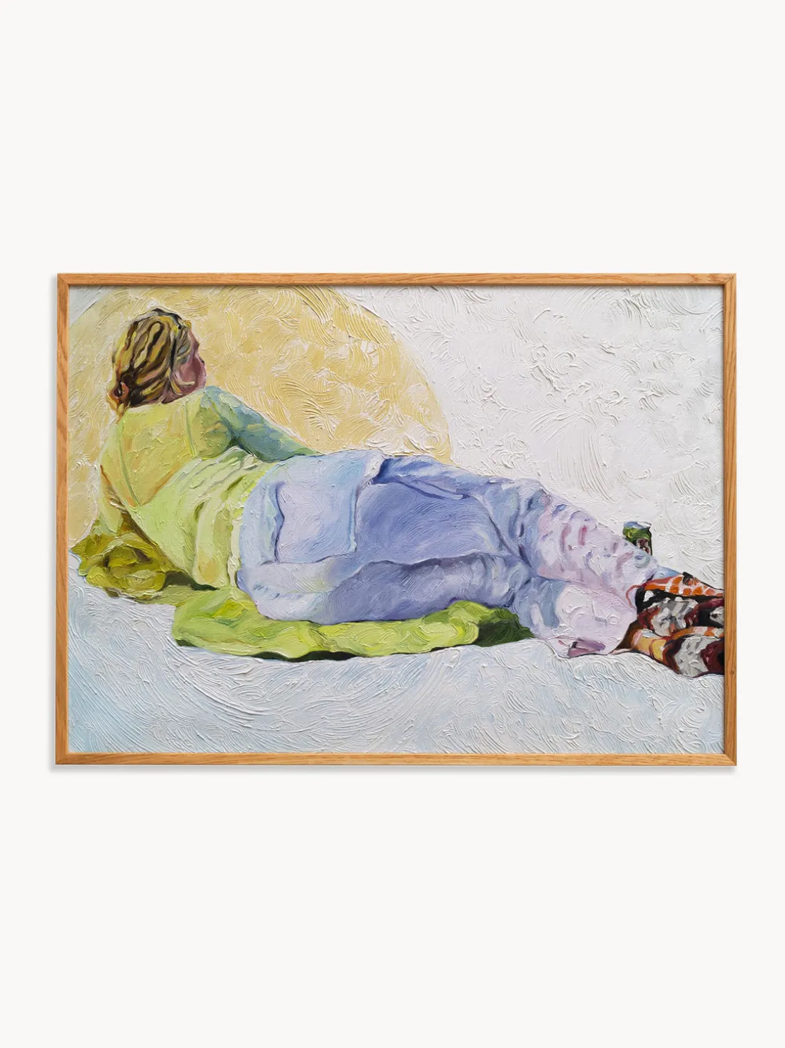 OLIMPIA es una composición artística de una pintora residente en Copenhague, Lolita Pelegrim. Inspirándose en la obra Olympia de Édouarda Manet, Pelegrim presenta una interpretación moderna del clásico: una figura tumbada en suaves tonos de verde claro, blanco y delicado violeta. La sutil representación se ve aún más acentuada por la relajante paleta de colores de la obra de arte.