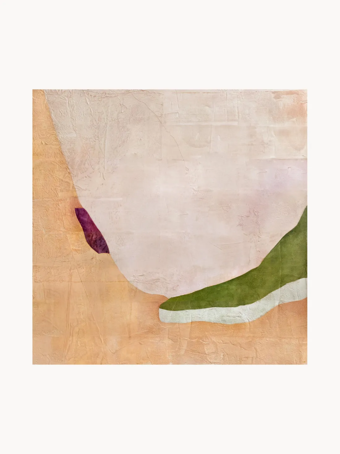 RITMO es una composición artística de la artista mexicana Berenice Hernández. Formas orgánicas y abstractas se entrelazan en la última colección de Berenice Hernandez para Paper Collective. Pintados sobre lienzo y lino crudo, tonos de verde y morado intenso se mezclan con rosas terrosos, amarillos y beige para crear composiciones que celebran el ritmo fluido, o RITMO, en cada pieza.