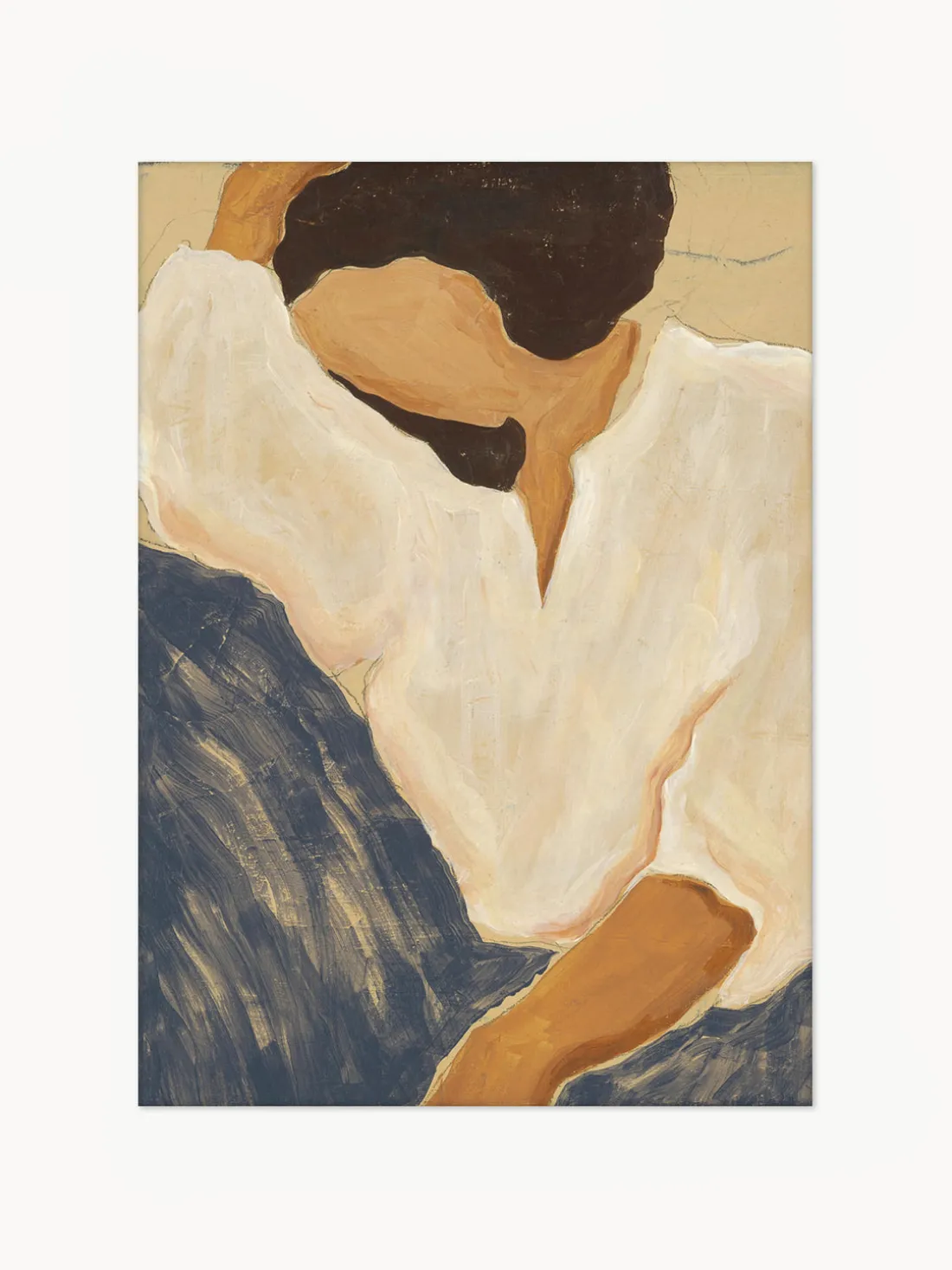 La ropa suave y fluida y un carácter relajado forman el centro de Silent Dreams, del dúo de artistas franceses Sacrée Frangine. Explorando la belleza de las tranquilas situaciones cotidianas, este motivo presenta un enfoque sobrio de la forma y el tema: suaves pinceladas de color en azul, blanco y marrón unen la composición. Se crea una sensación de calma en una impresión artística que contiene las cualidades expresivas y táctiles del color sobre lienzo.