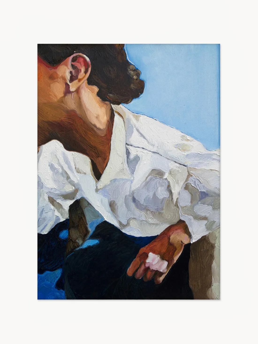 Inspirado en los momentos fugaces de la vida cotidiana, The Man I Met In A Bar, de la artista residente en Copenhague Lolita Pelegrime, transmite una sensación de movimiento y energía en este grabado. Realizada con pintura al óleo sobre lienzo, una única figura en blanco cobra vida gracias a la gruesa aplicación del medio elegido por Pelegrime. La belleza y vitalidad de los momentos cotidianos capturados en el flujo del tiempo se muestra en la composición, demostrando la habilidad del artista para crear profundidad, movimiento y dramatismo a través de cada pincelada.