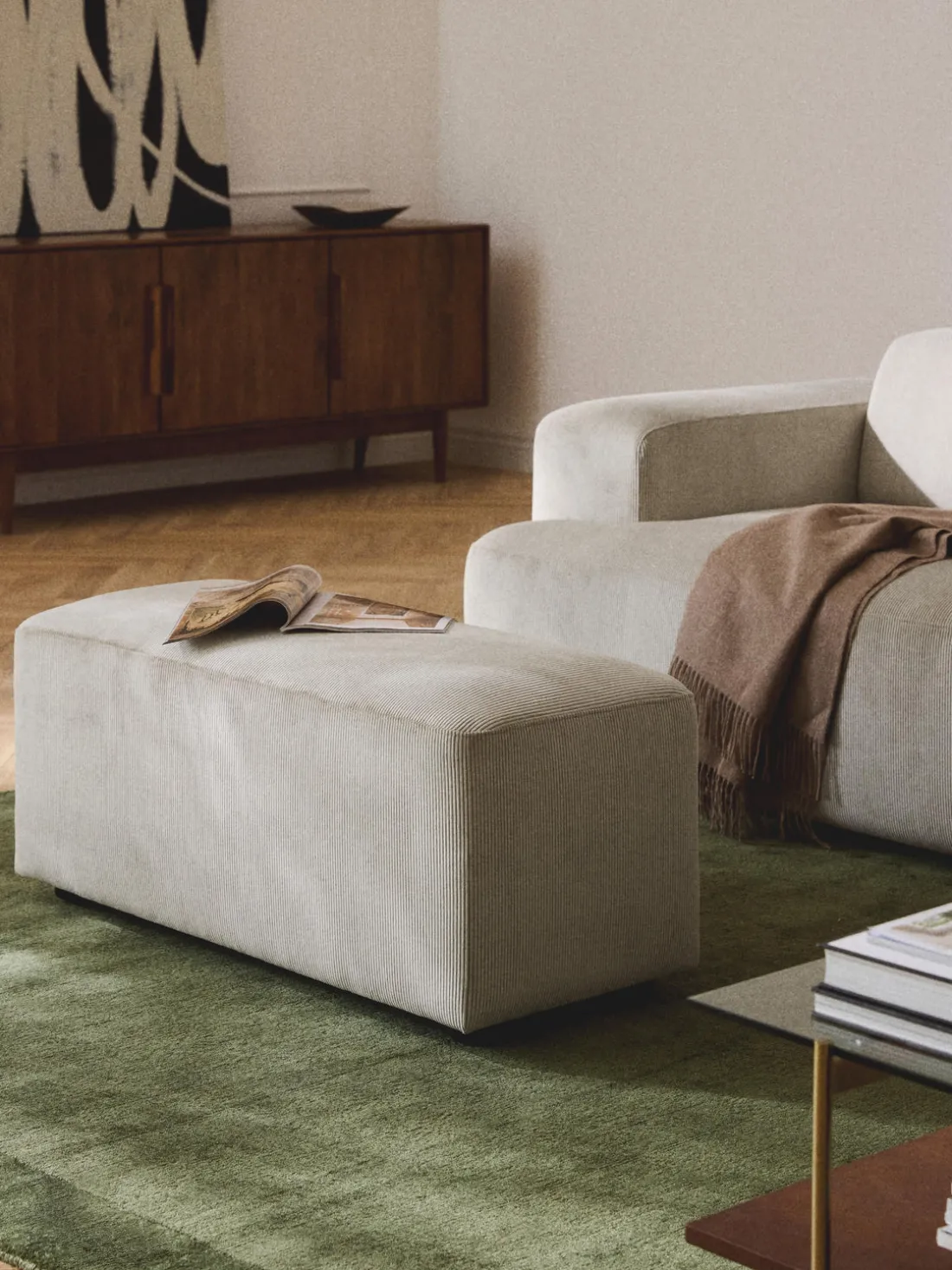 Puf reposapiés de pana Melva, An 99 x F 42 cm