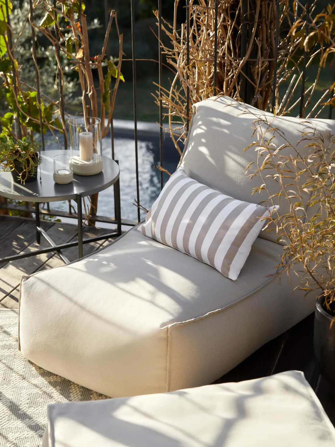 Adecuado para su uso exteriores, pero siempre debe estar protegido de la humedad y las heladas. Puede desteñirse en la luz solar intensa.