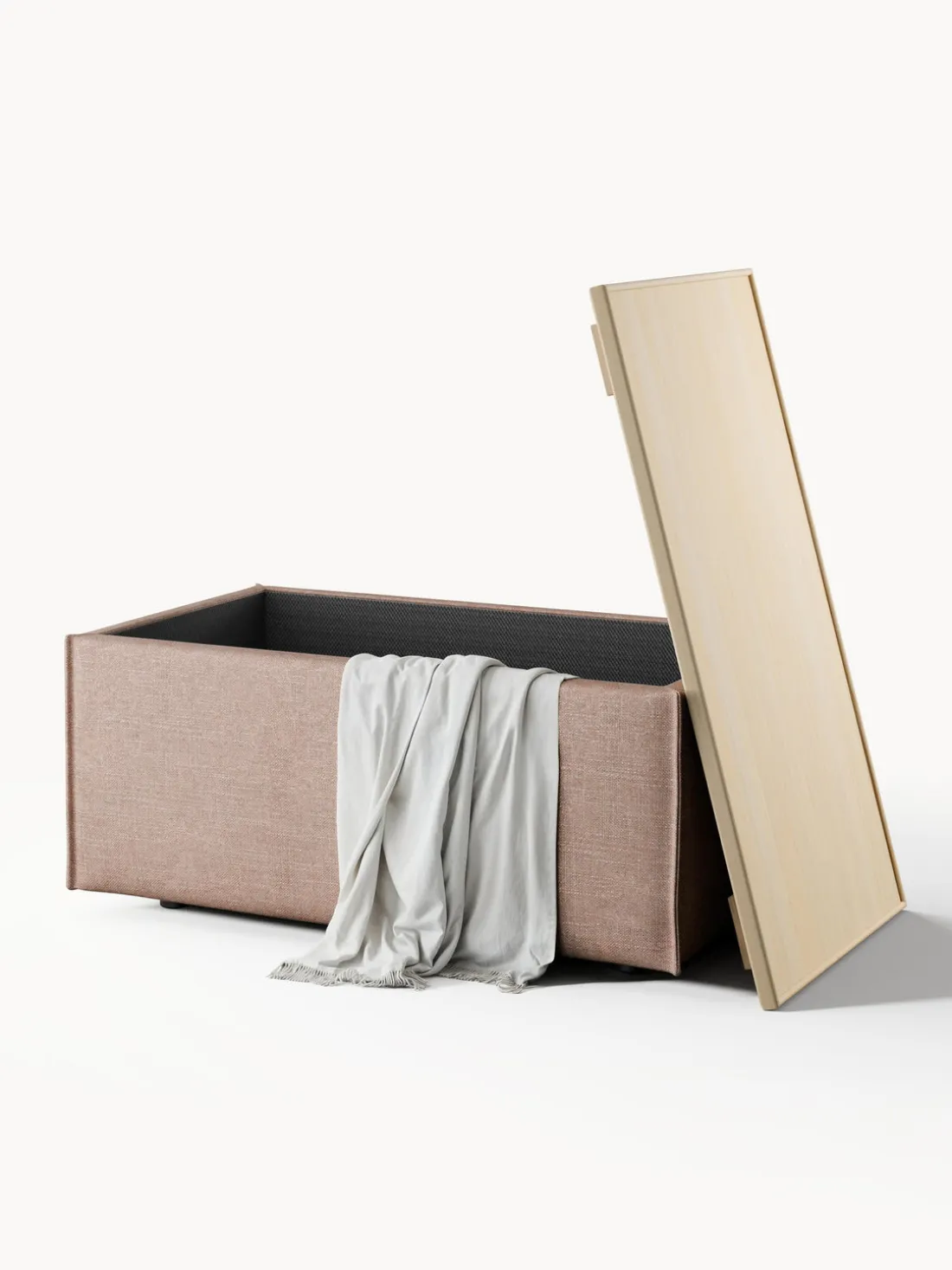 Reposapiés puf de mezcla de lino con espacio de almacenamiento Lennon