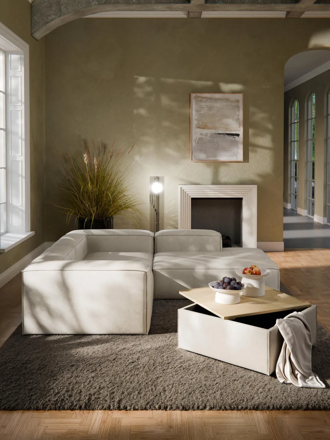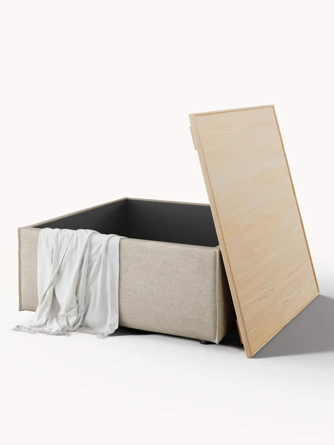 Reposapiés puf de mezcla de lino con espacio de almacenamiento Lennon