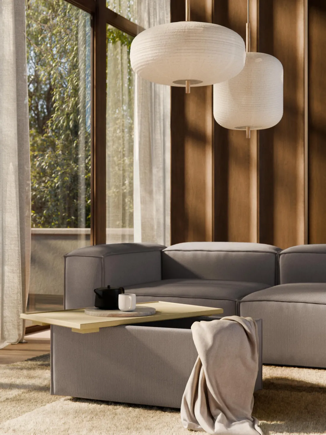 Reposapiés puf de pana con espacio de almacenamiento Lennon