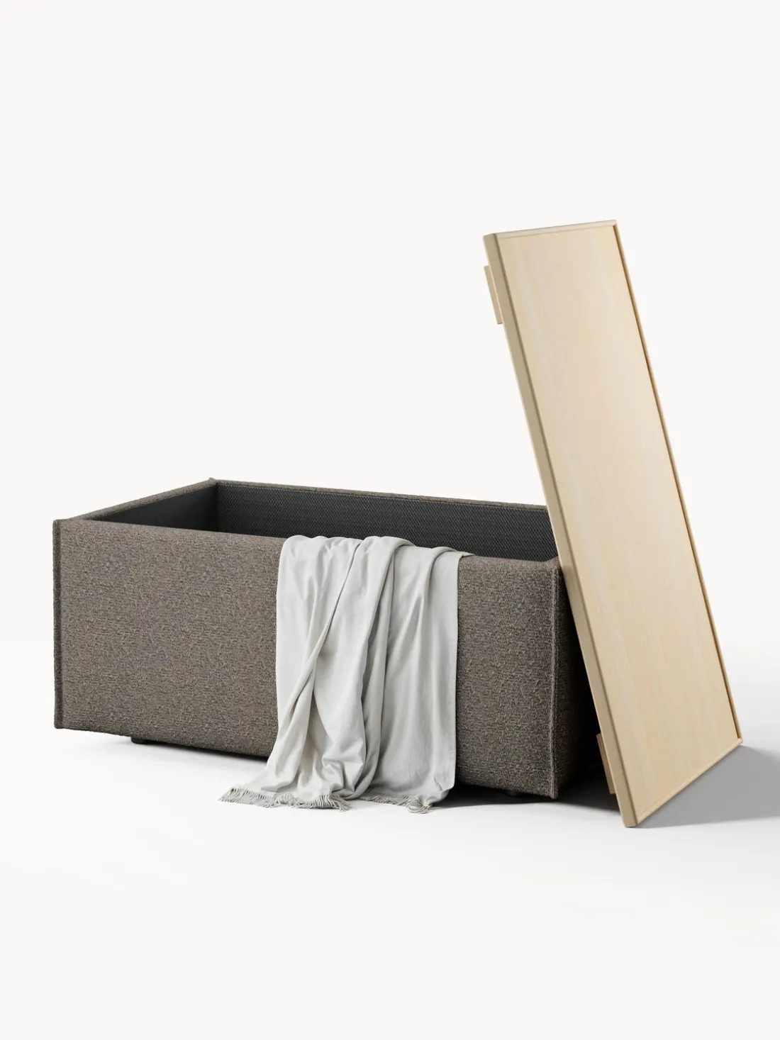 Reposapiés puf en tejido bouclé con espacio de almacenamiento Lennon