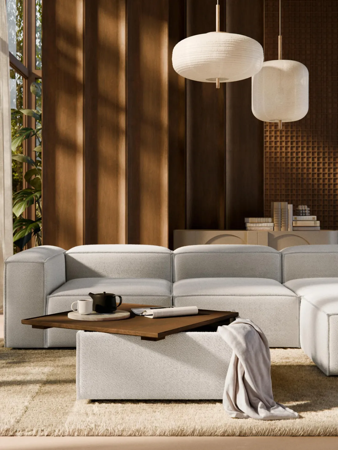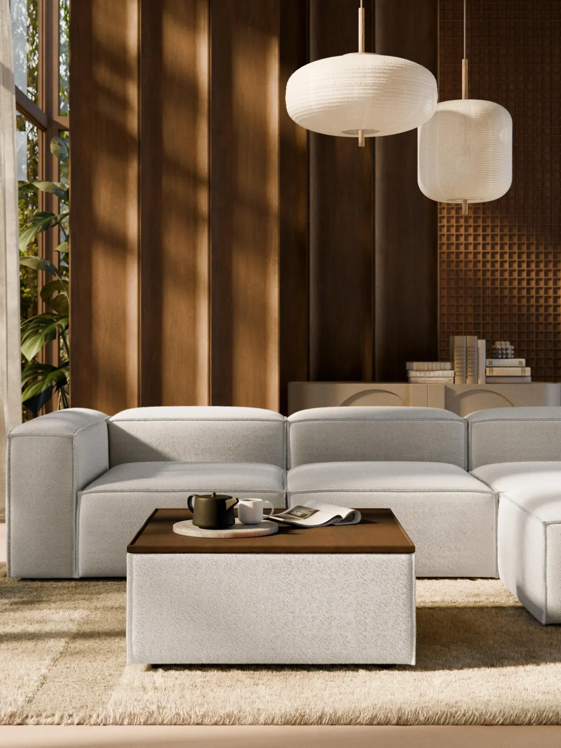 Reposapiés puf en tejido bouclé con espacio de almacenamiento Lennon