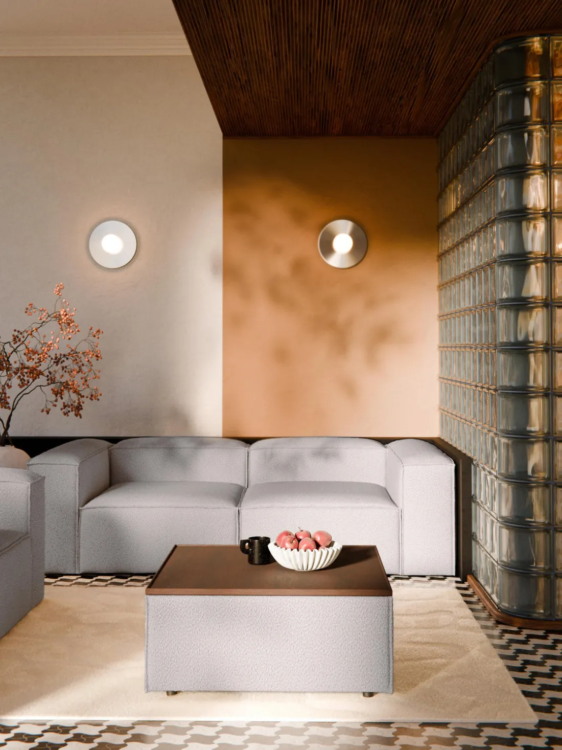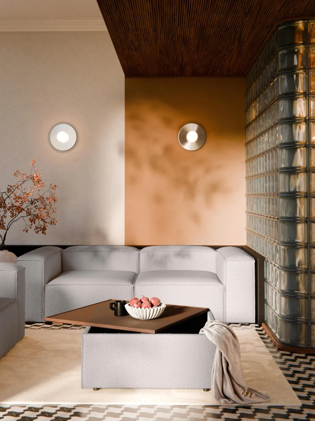 Reposapiés puf en tejido bouclé con espacio de almacenamiento Lennon