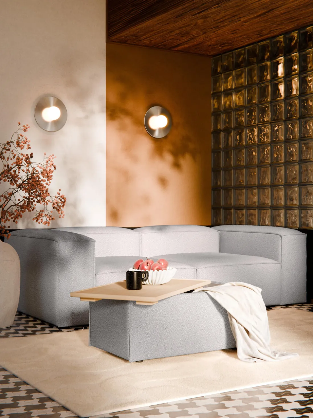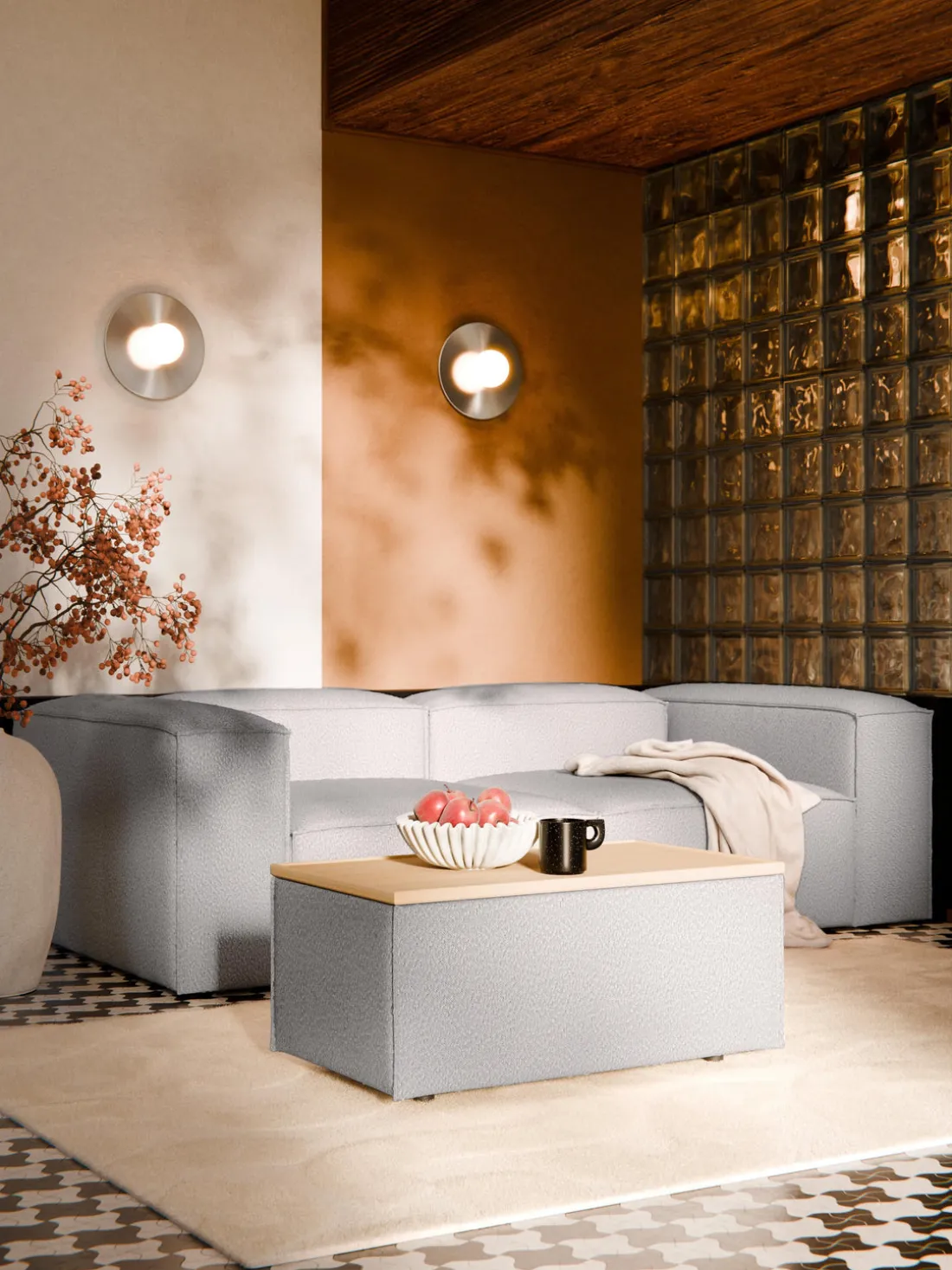 Reposapiés puf en tejido bouclé con espacio de almacenamiento Lennon