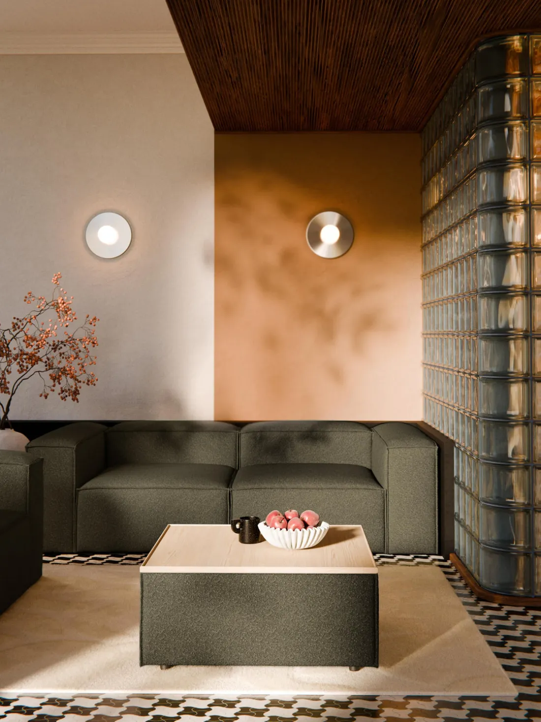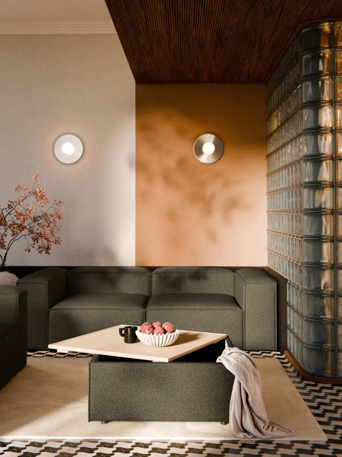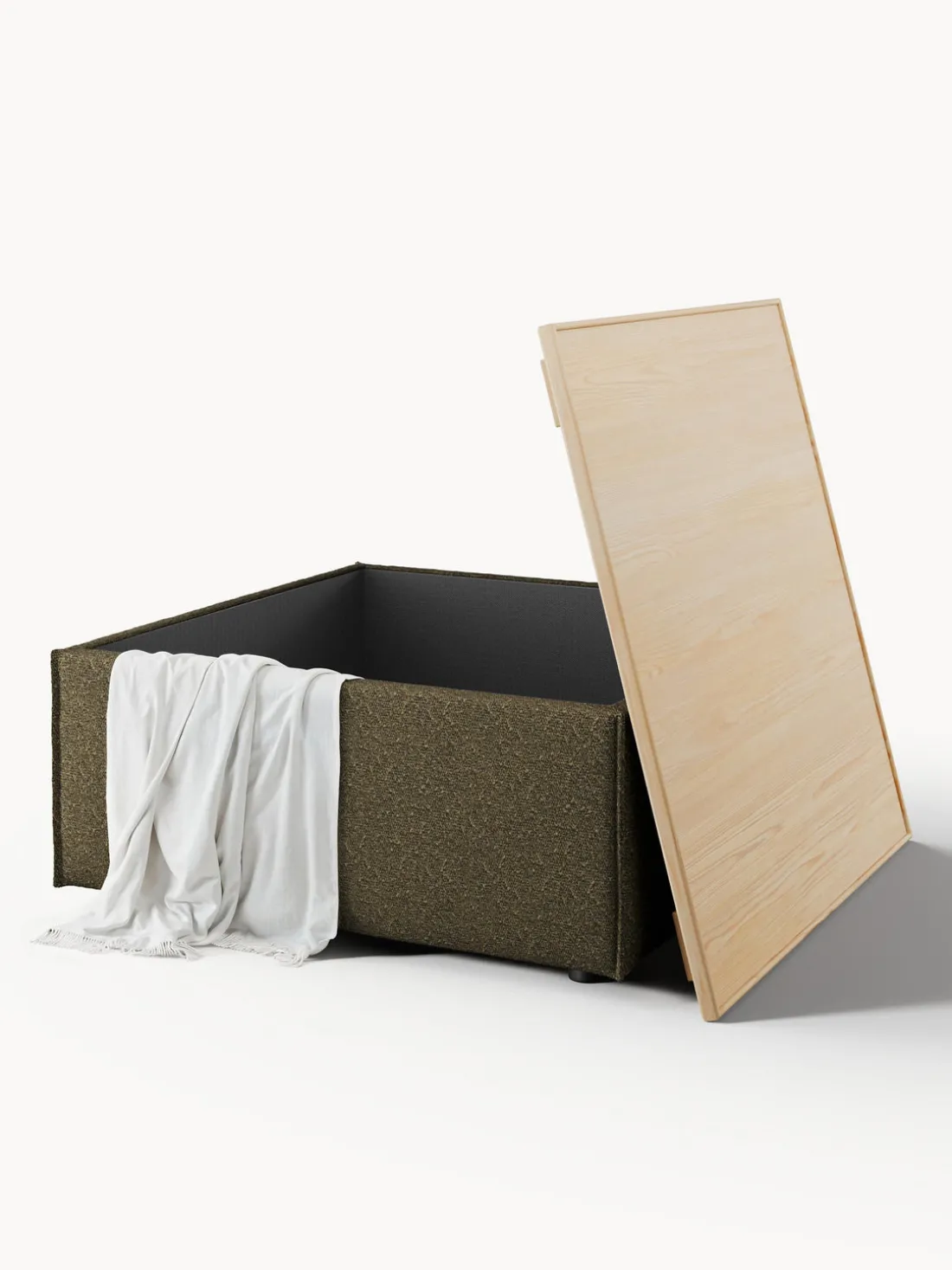 Reposapiés puf en tejido bouclé con espacio de almacenamiento Lennon